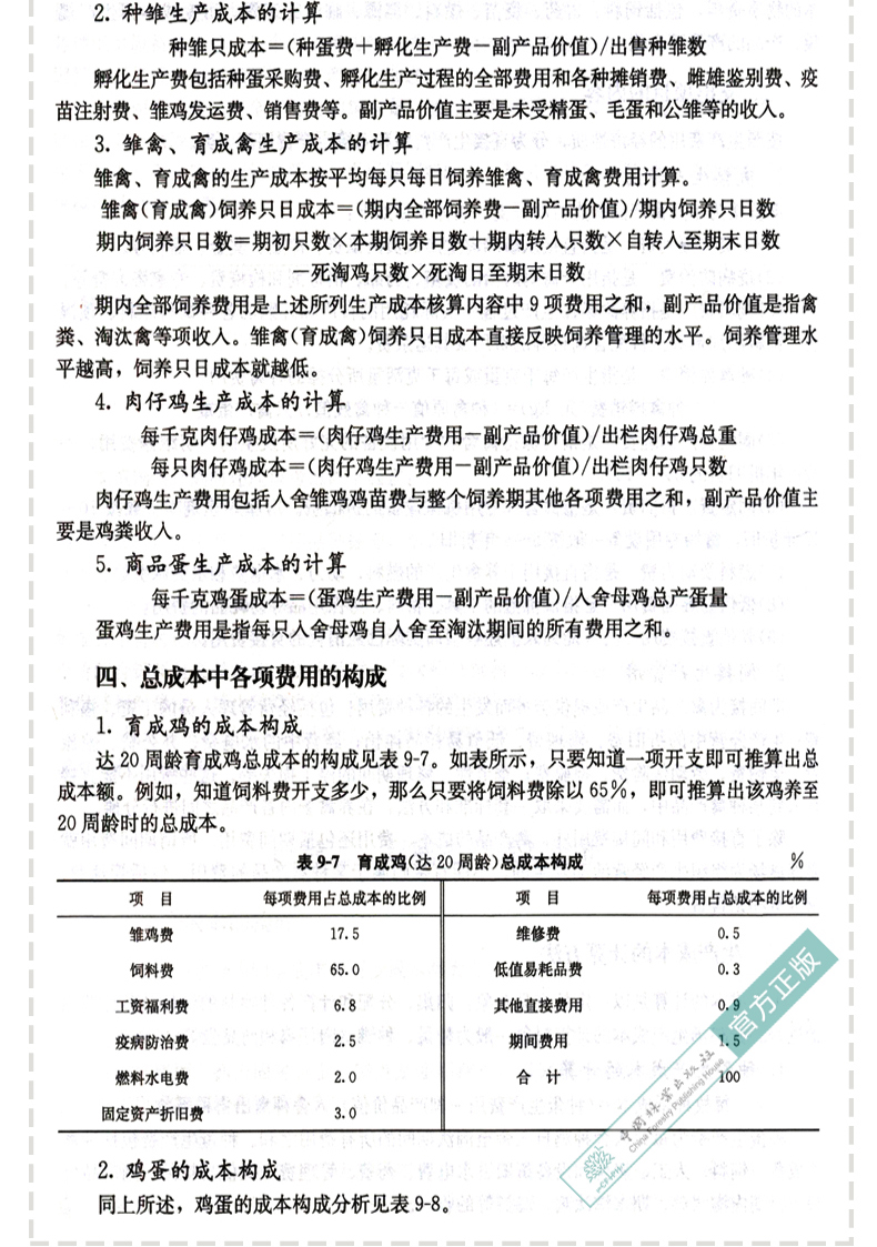 任务二 家禽生产成本分析