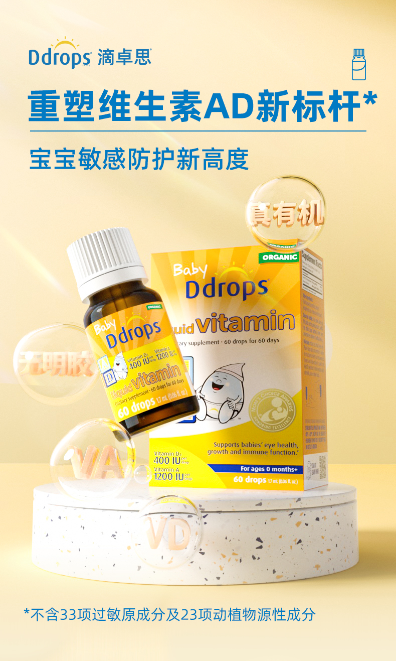 【保税仓】DDROPS婴幼儿维生素A+D滴剂60滴/瓶