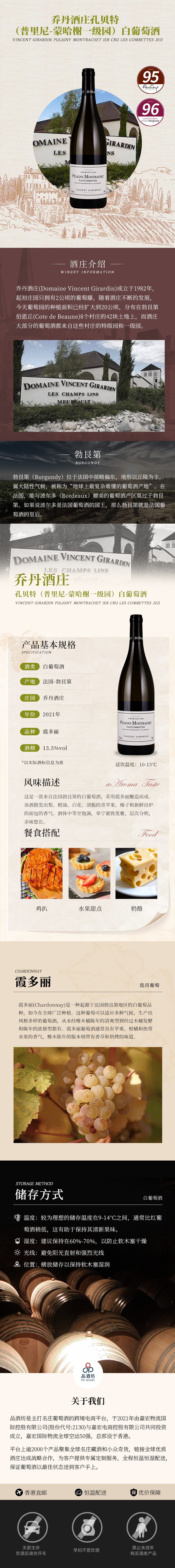 2021 Vincent Girardin Puligny Montrachet 1er Cru Les Combettes 乔丹酒庄孔贝特(普里尼-蒙哈榭一级园)白葡萄酒