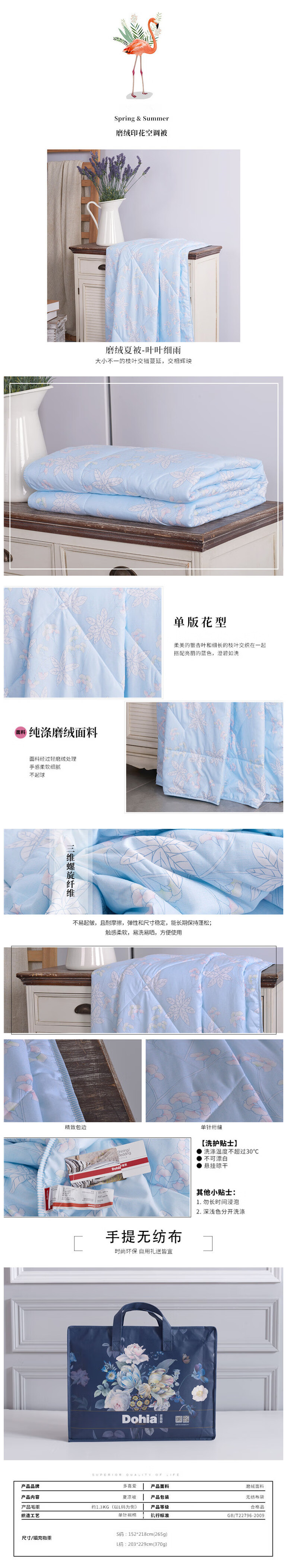 多喜爱 磨绒夏被 可水洗空调被(叶叶细雨)Ⅱ