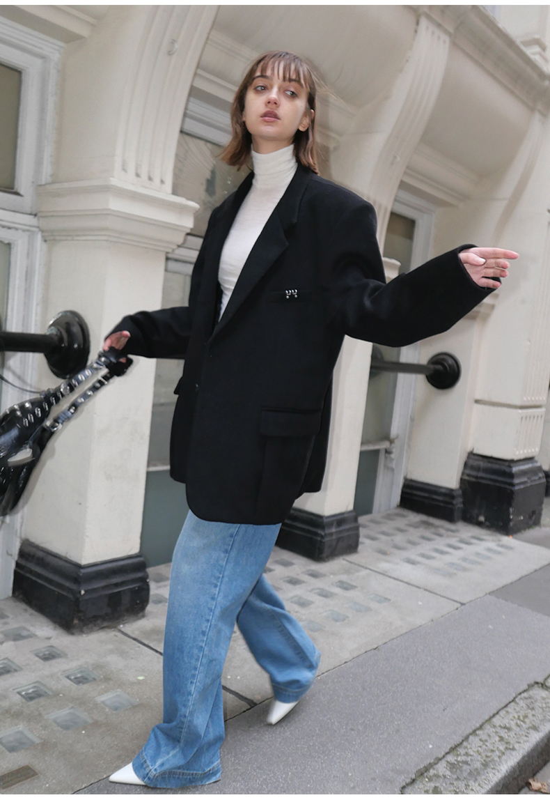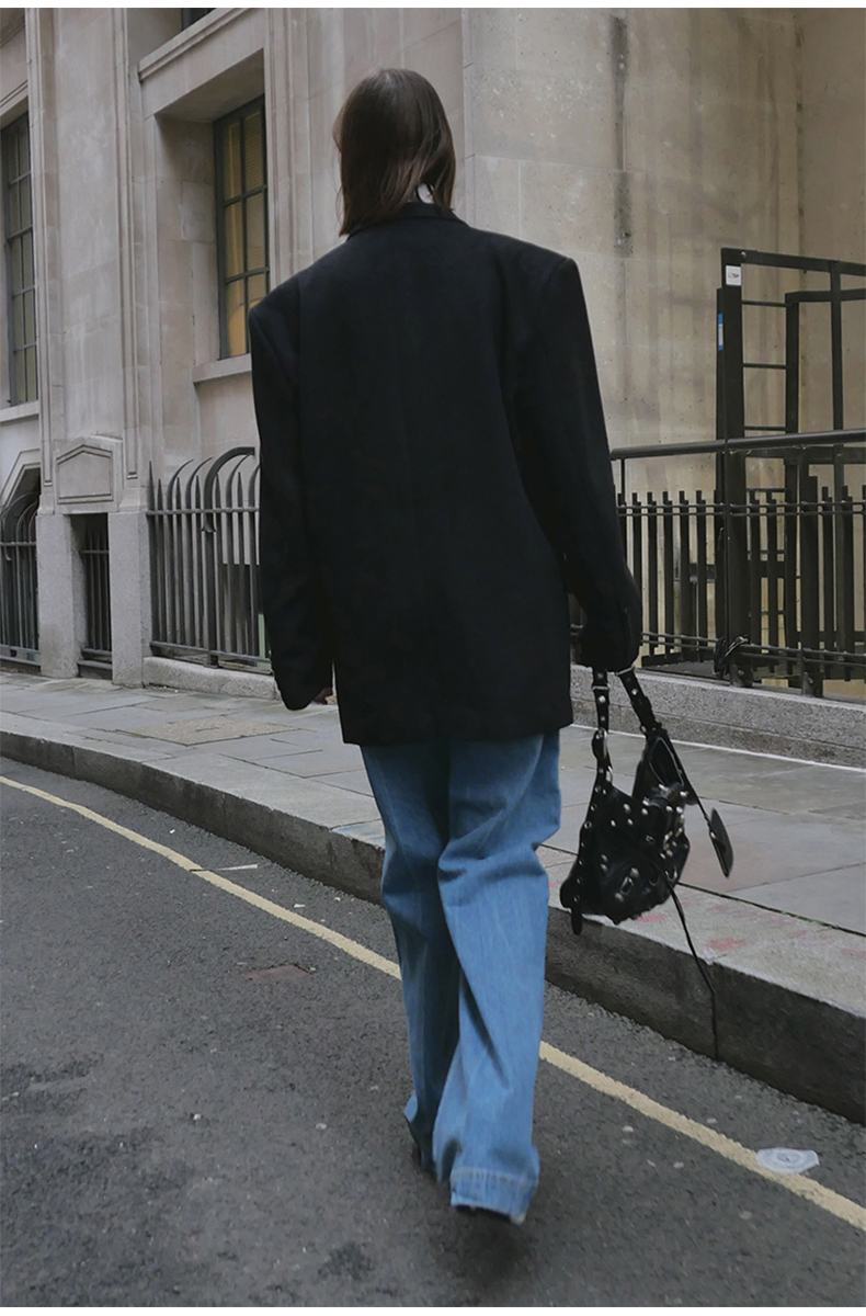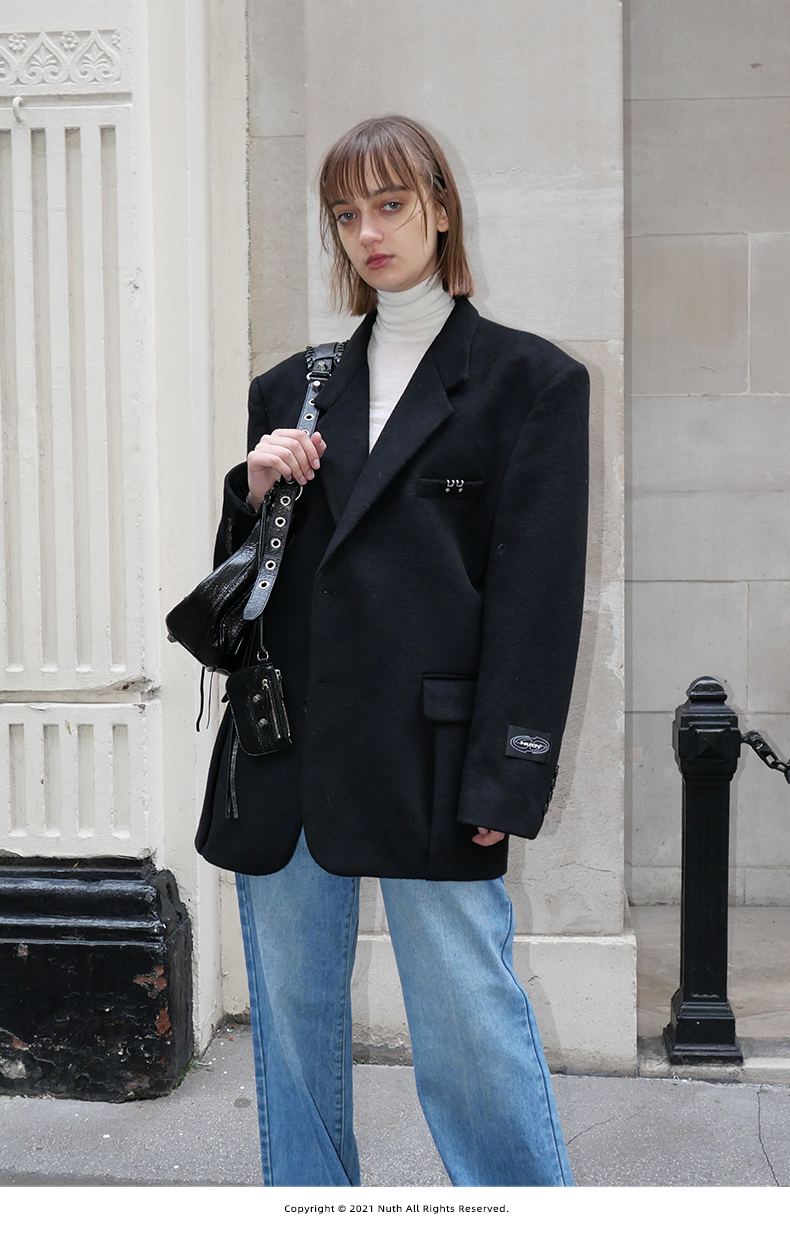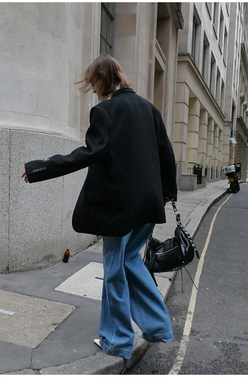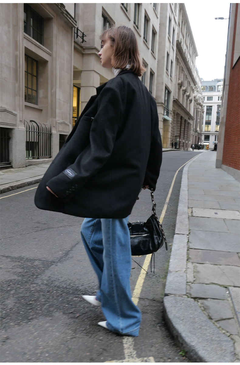 NUTH黑色毛呢西装羊毛呢西服宽松百搭oversize外套