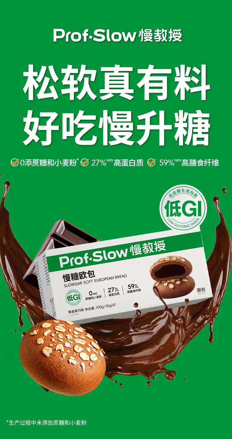 「慢教授ProfSlow」(原慢糖家),专注于科学控糖的健康营养品牌。由2位浙大校友创立,联合全球优秀的食品科学家和健康营养专家,为有控糖需求的用户研发好吃、低升糖的健康食品和营养补充剂。
