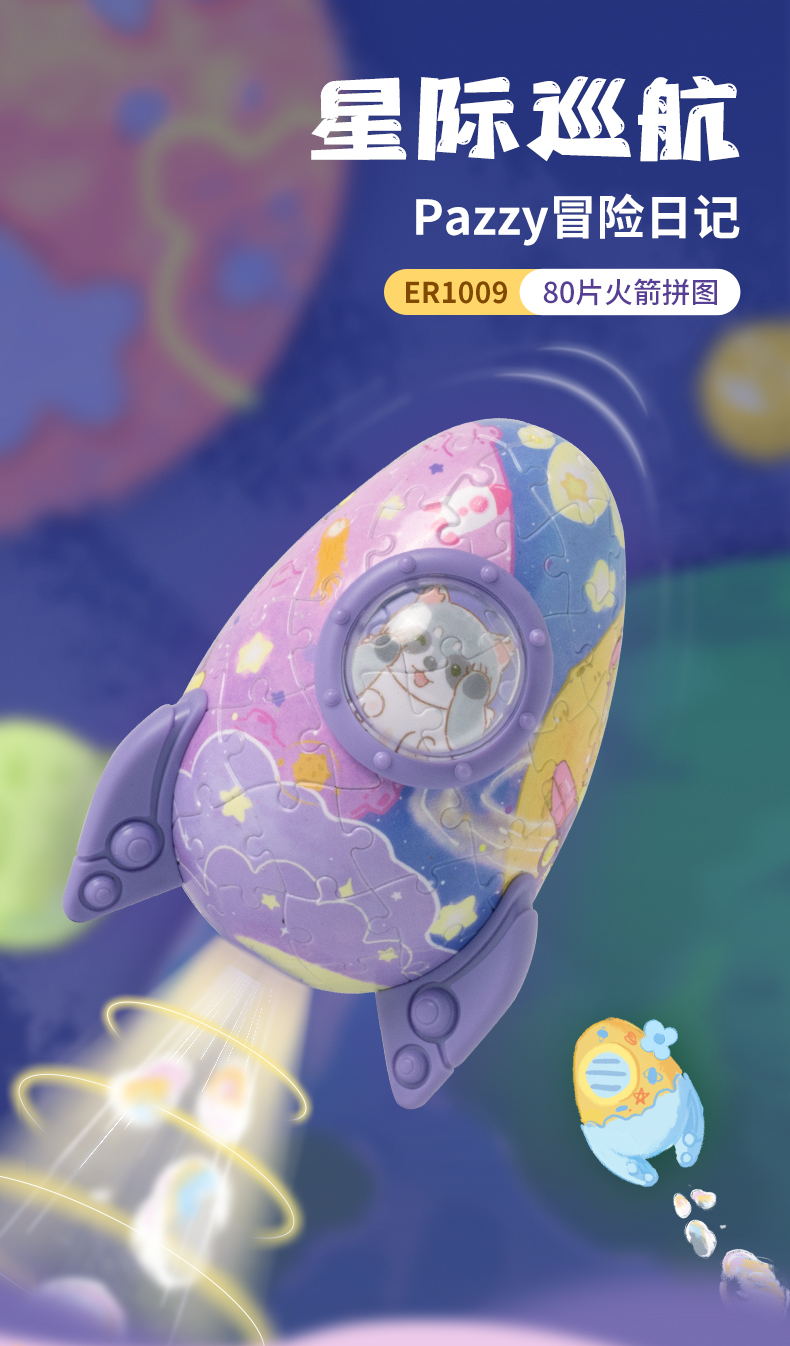 【折扣商品 不退不换】80片 火箭塑料拼图 ER1009 Pazzy冒险日记-星际巡航
