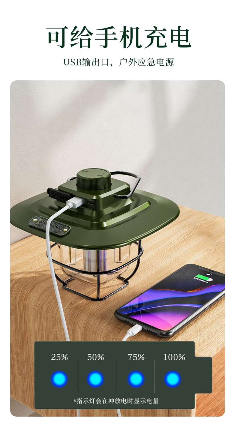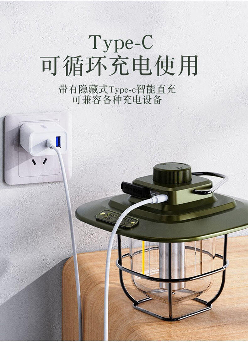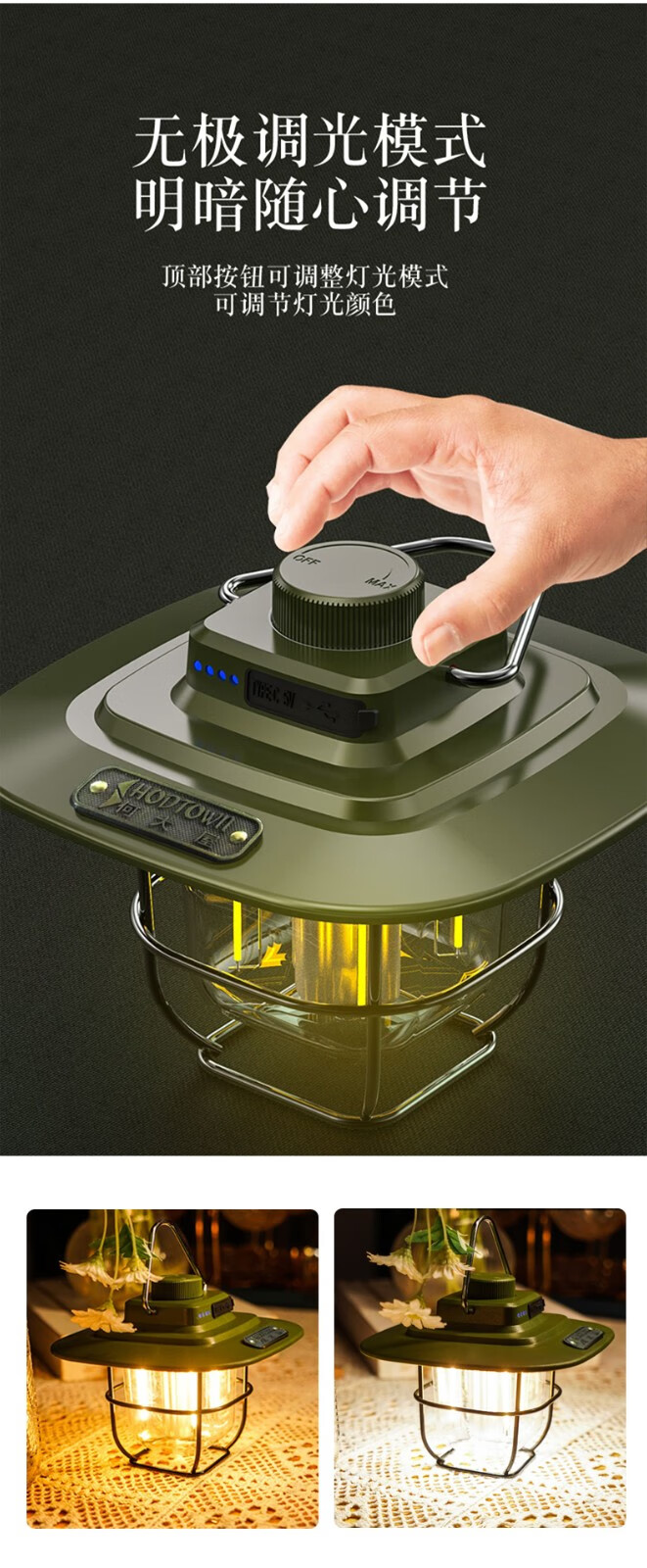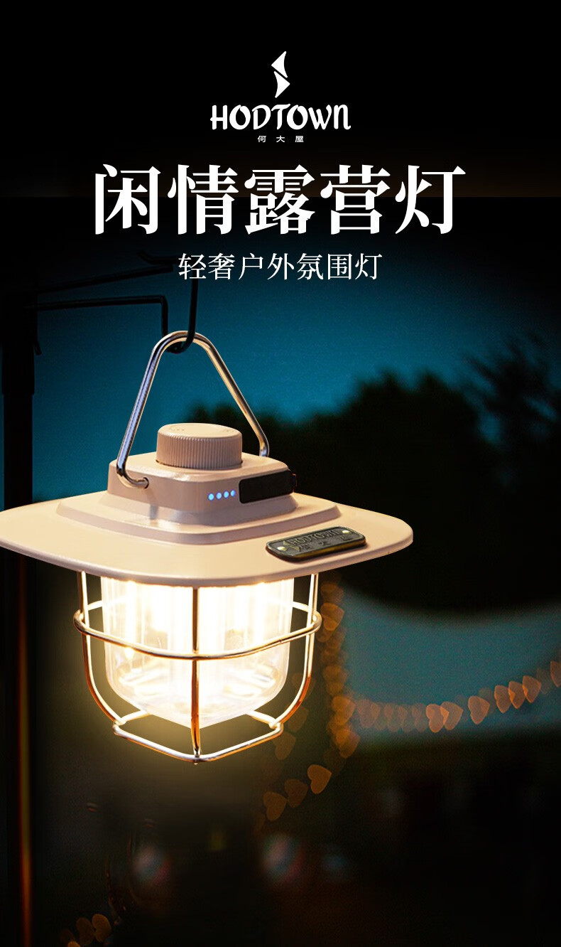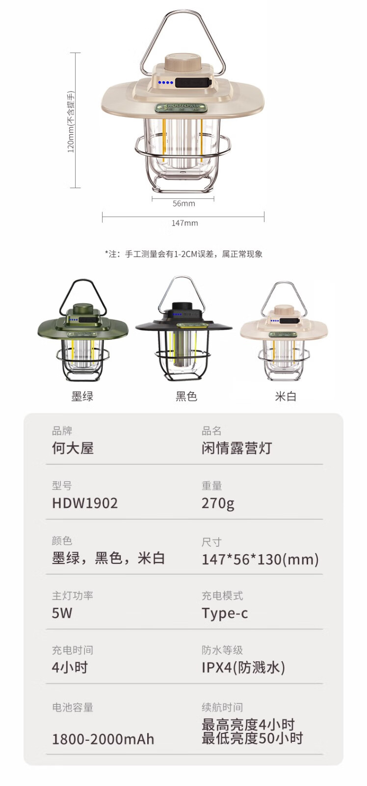 何大屋(Hodtown)野营灯 应急照明露营灯HDW1902黑/米白/墨绿