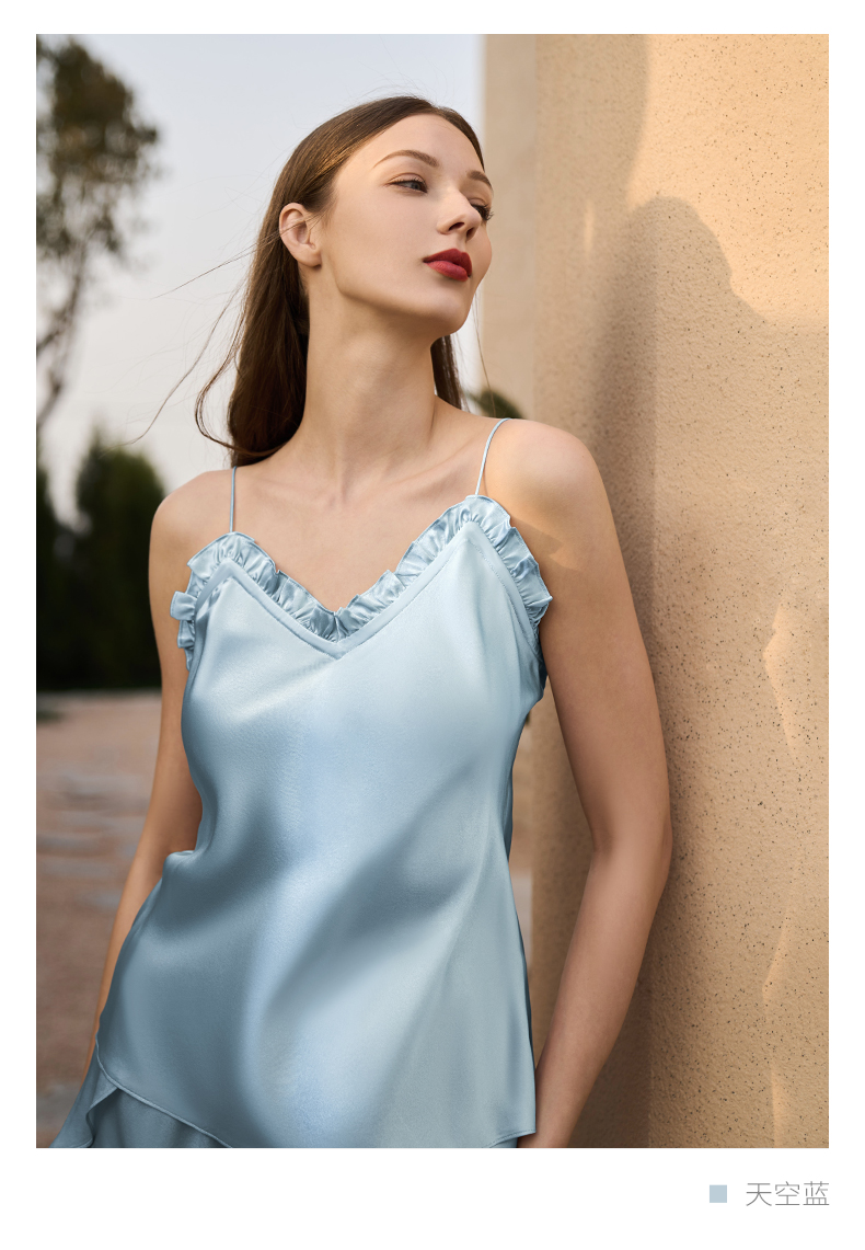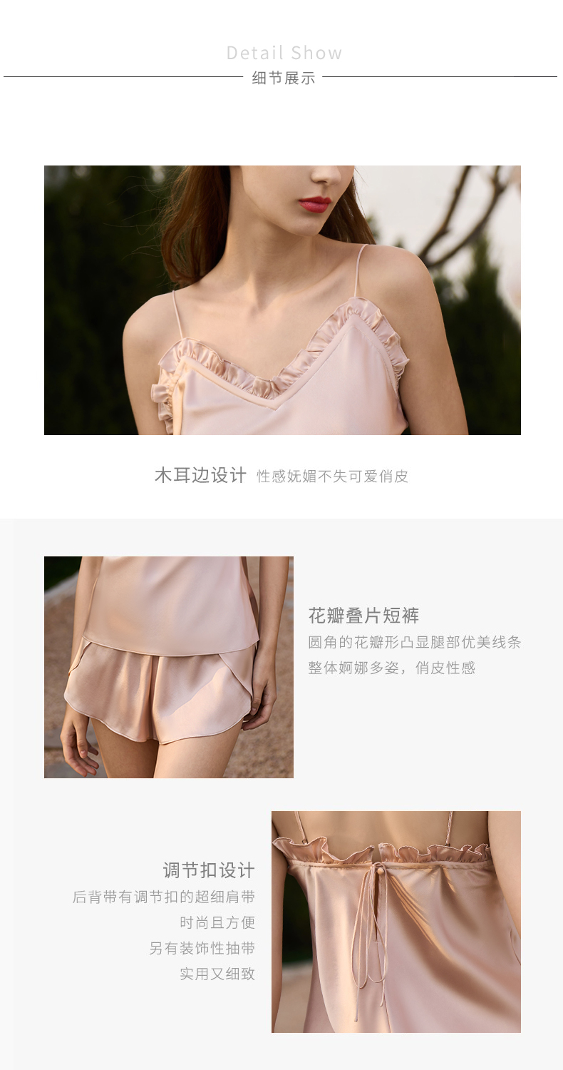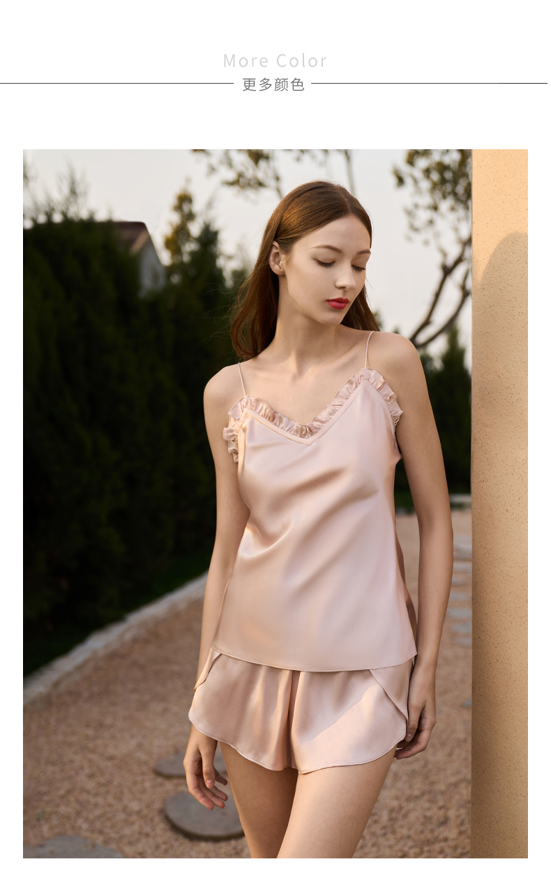 Solo seta真丝睡衣套装女吊带短裤丝绸家居服桑蚕丝亲肤秋冬