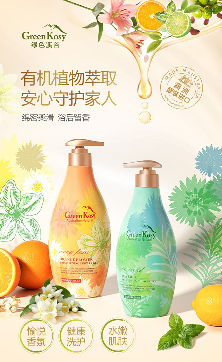 绿色溪谷橙花亮肤沐浴露700g+绿色溪谷茶树舒爽沐浴露700g (两只组合)