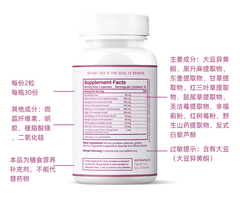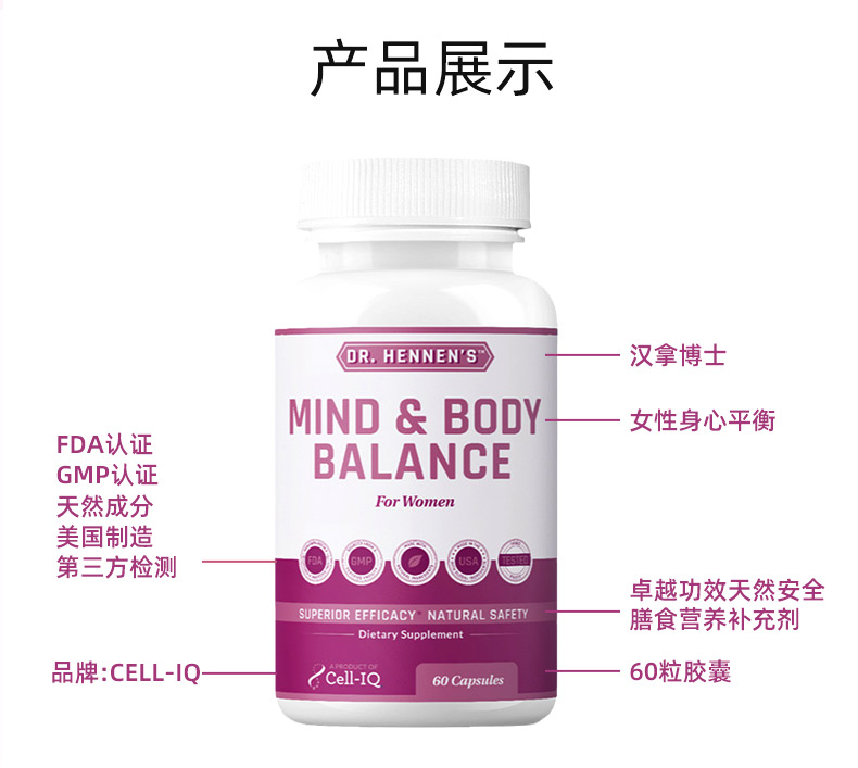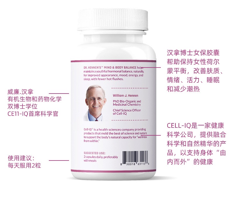 美国Cell-IQ汉拿博士女保胶囊Mind and Body Balance(60粒)