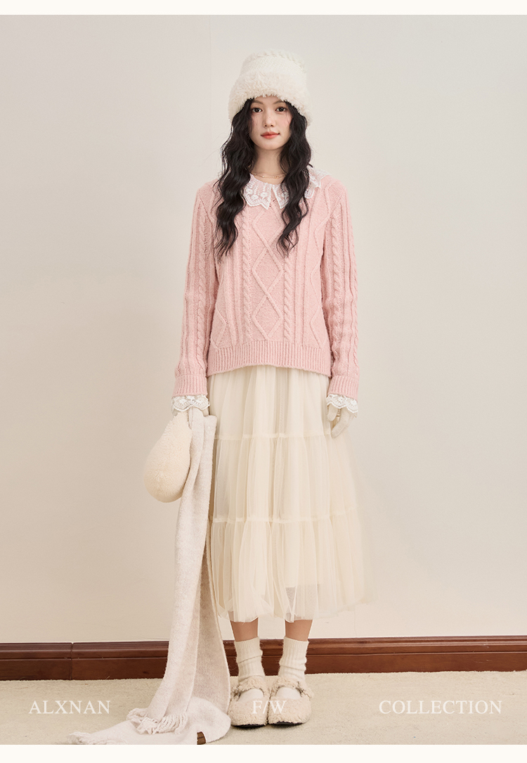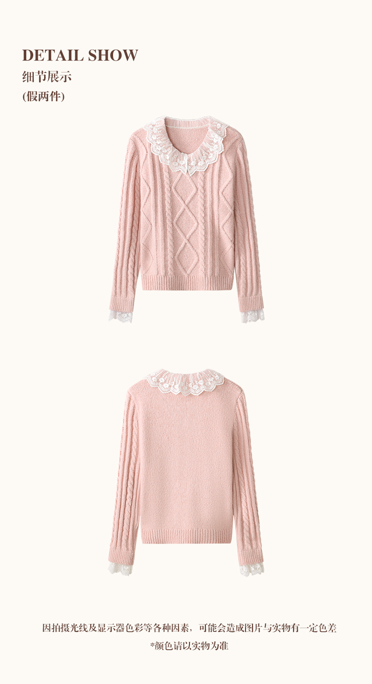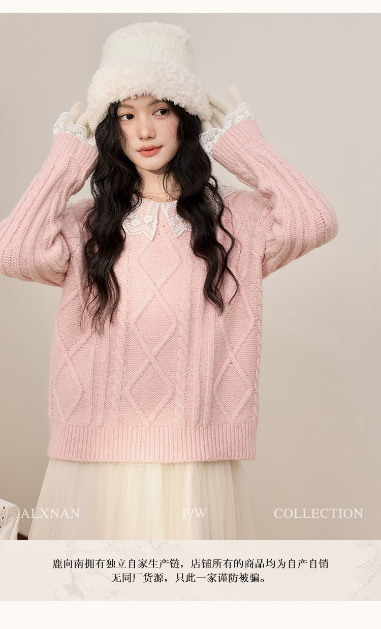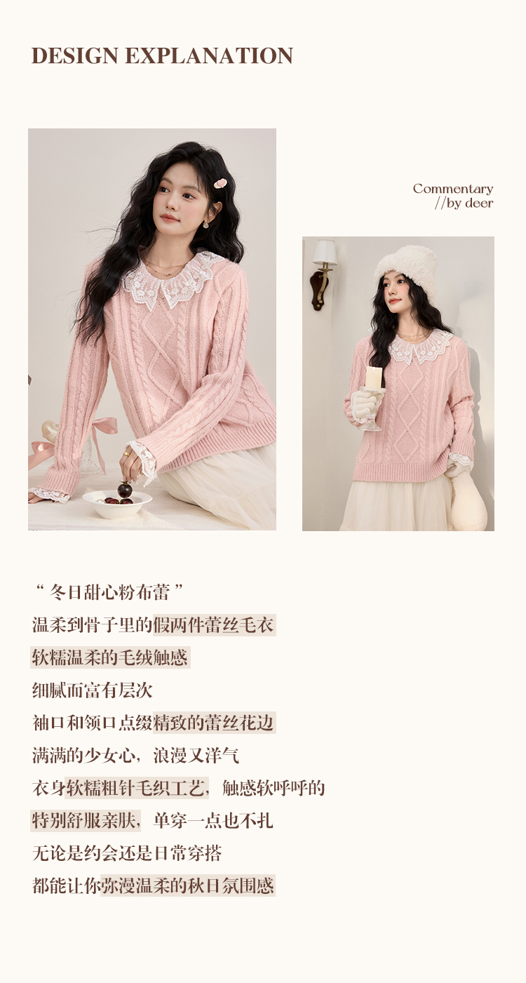 【65折秒杀】鹿向南「静谧午后」假两件毛衣女装冬季2024新款设计感针织上衣L51801