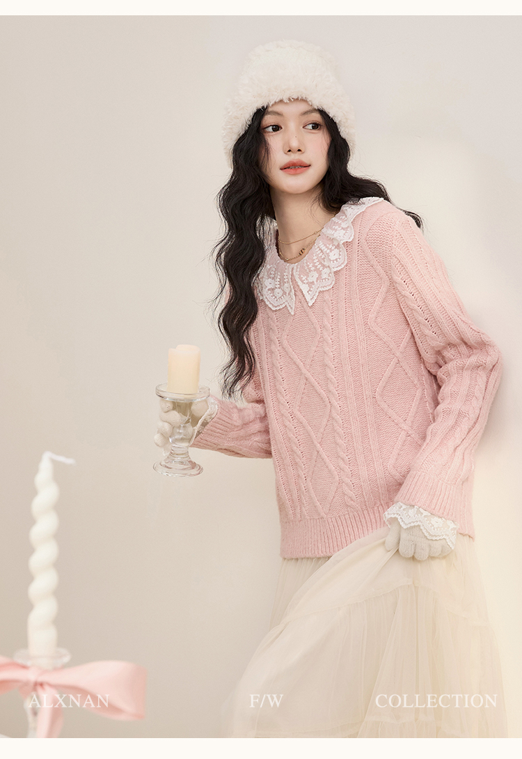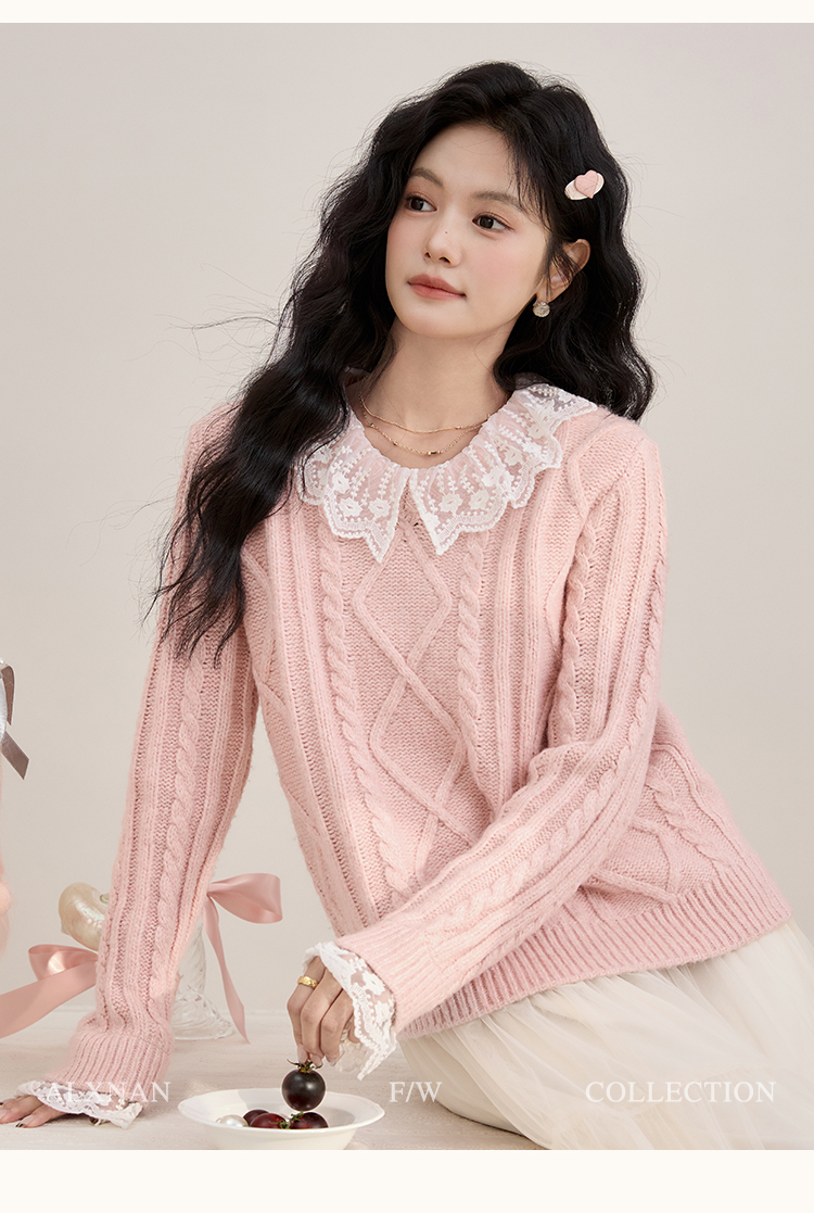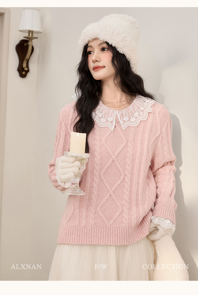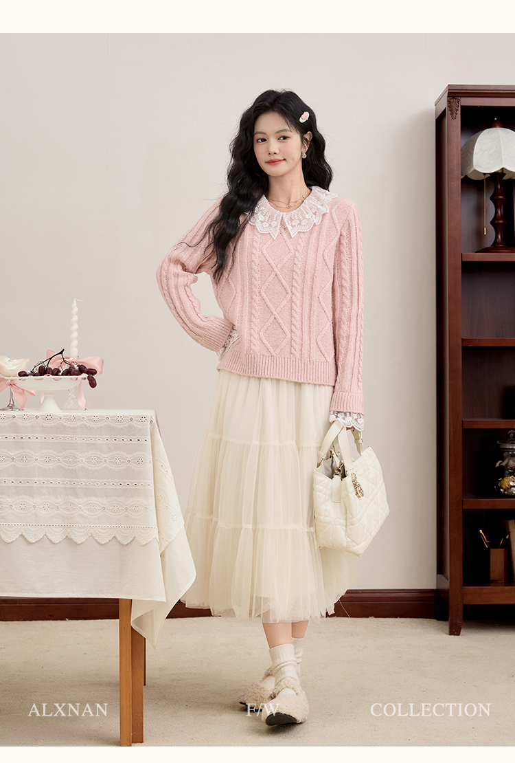 【65折秒杀】鹿向南「静谧午后」假两件毛衣女装冬季2024新款设计感针织上衣L51801