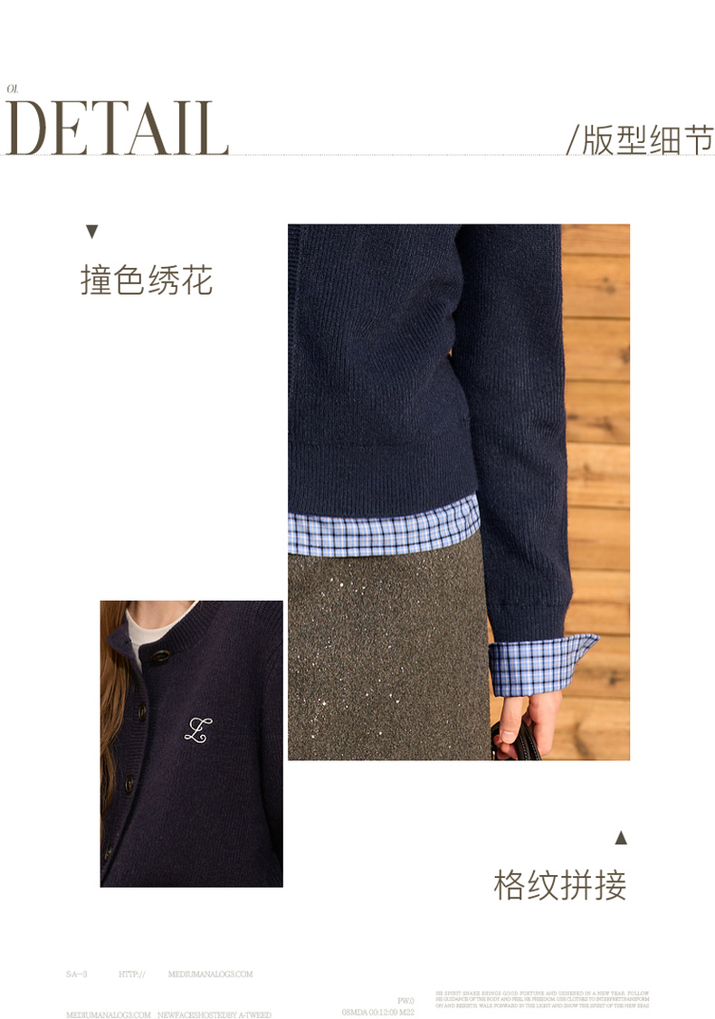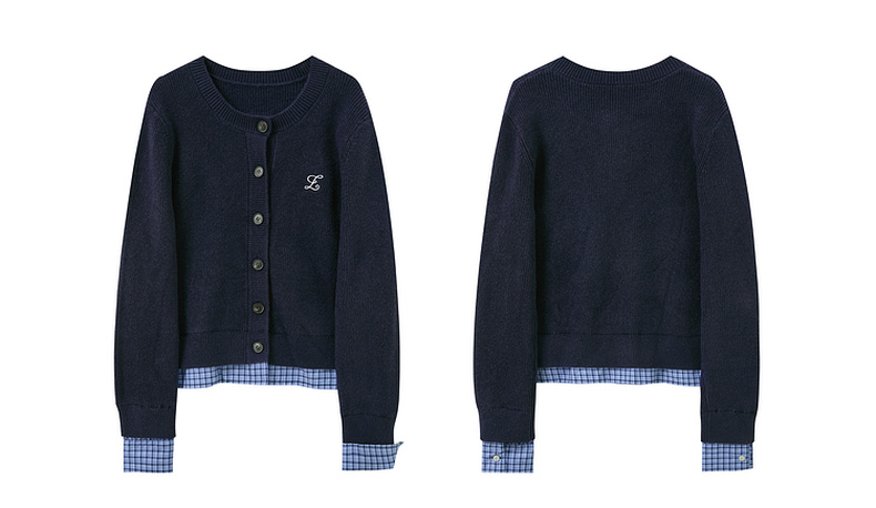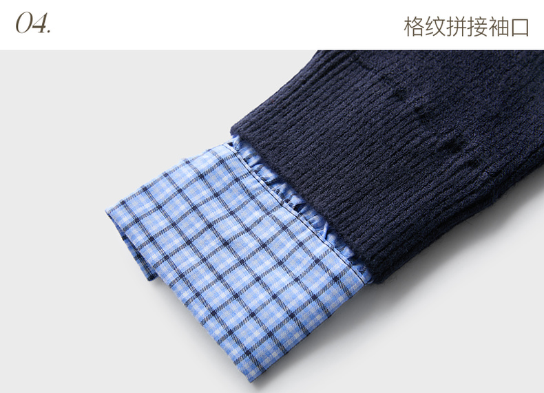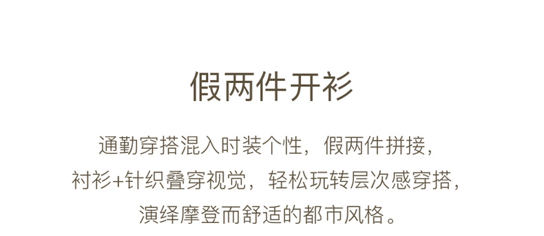 三彩2026春季新款圆领毛衣格纹假两件长袖开衫毛衫外套显瘦M