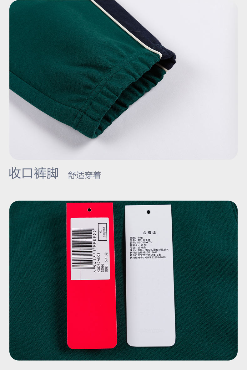 Kappa卡帕复古运动裤2023新款男针织撞色长裤休闲小脚裤收口卫裤