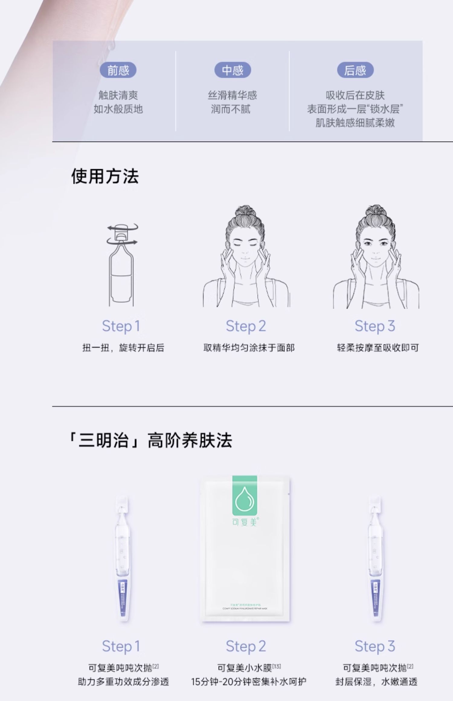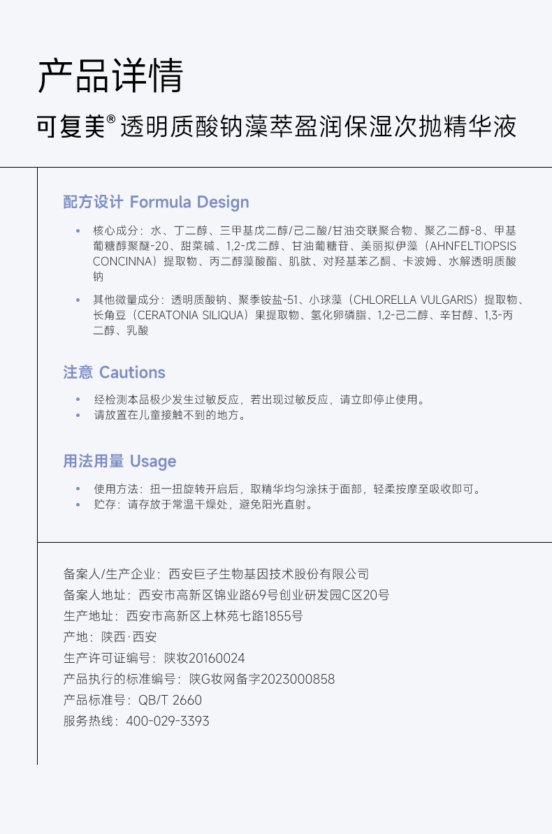 可复美透明质酸钠藻萃盈润保湿次抛精华液1.5ml*30支/盒(吨吨次抛)