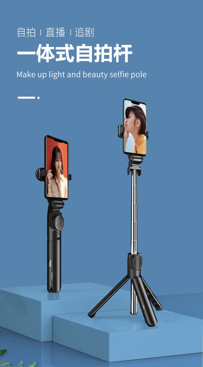 Stand XT-02 白色自拍杆三角一体式手持落地直播手机支架