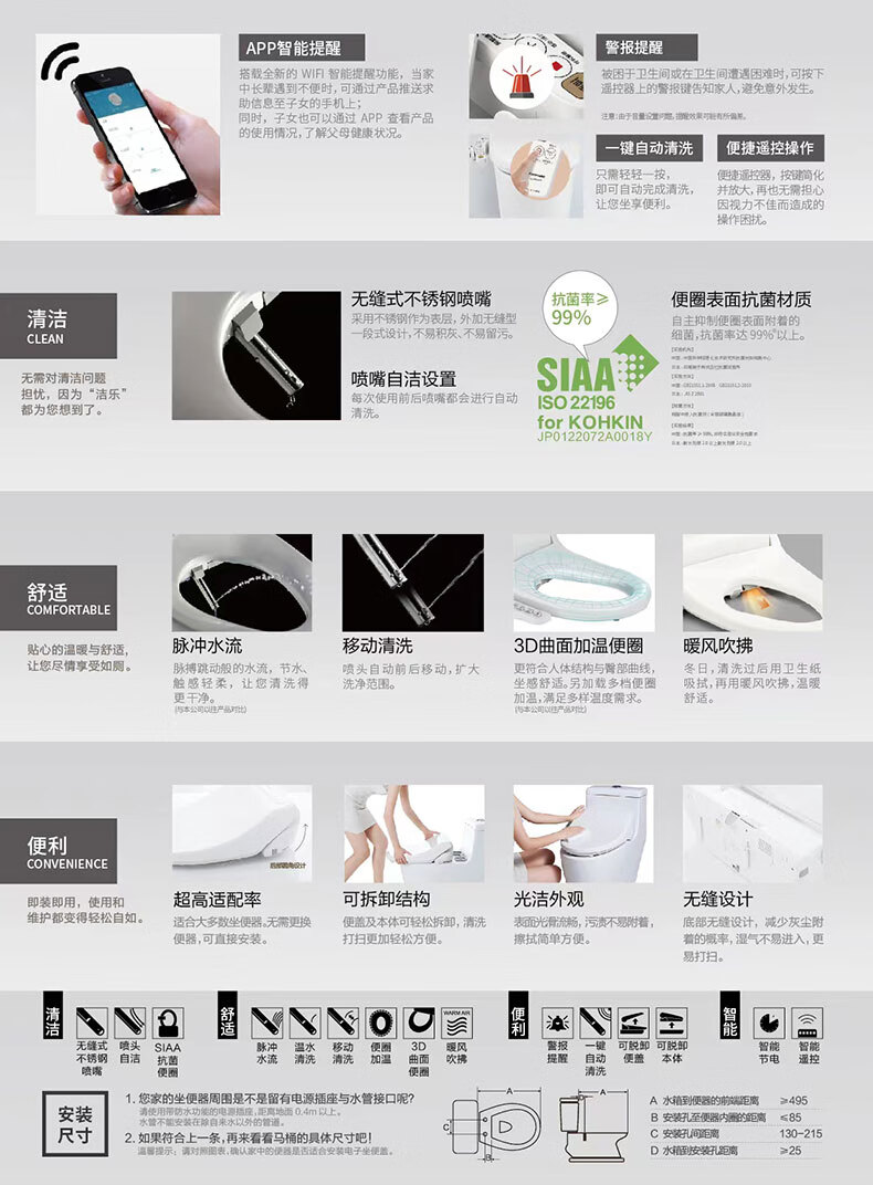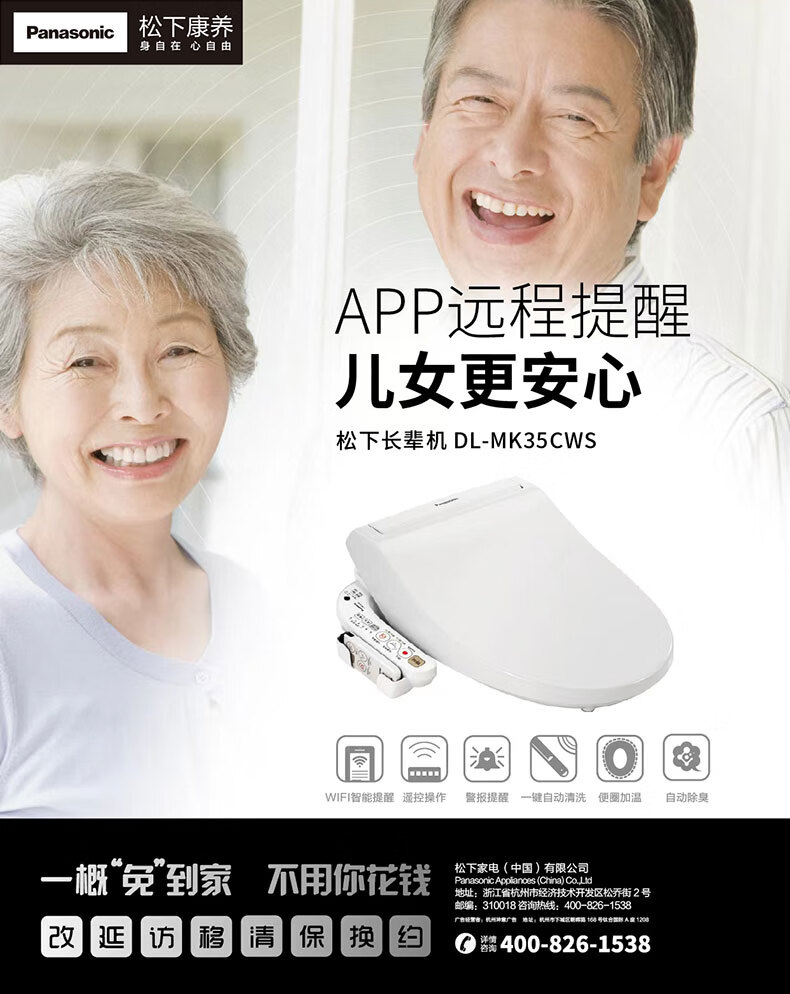松下(Panasonic)老人智能马桶盖APP提醒警报提醒温水清洗烘干加热便圈MK35
