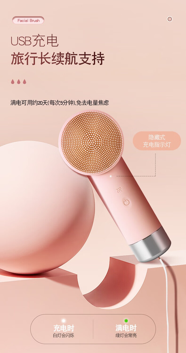 金稻电动洗脸仪洁面洗脸神器男女士美容仪面部按摩仪美容仪器家用脸部清洁神器导出导入仪 热敷精华导入仪硅胶洁面仪-KD307
