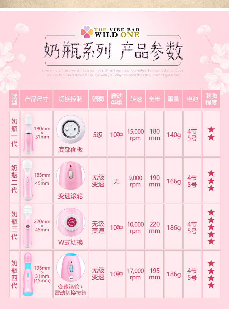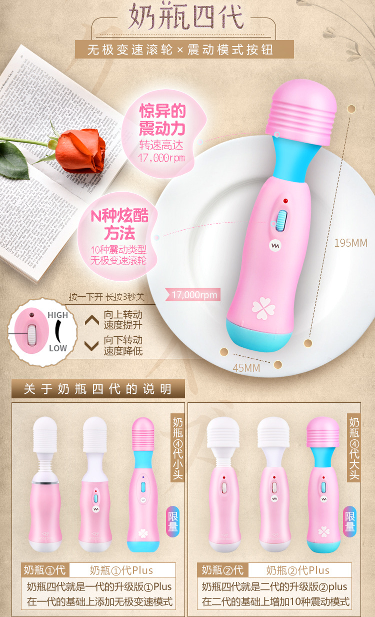WILDONE奶瓶AV棒女用震动按摩自慰器成人情趣性用品箱规:60个/箱