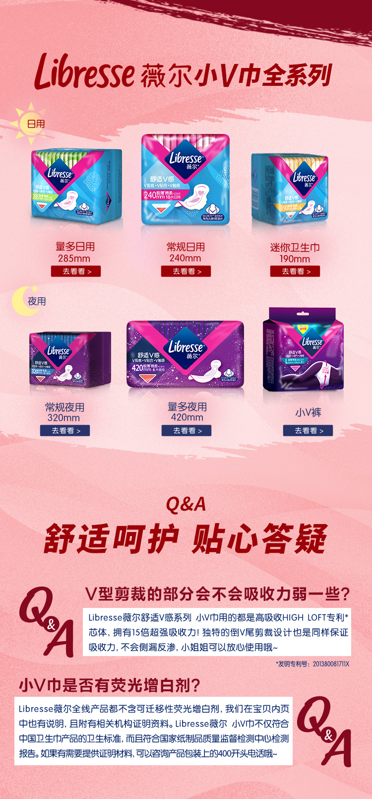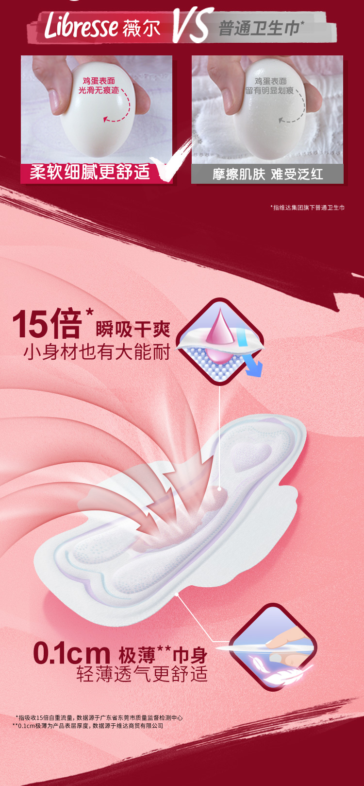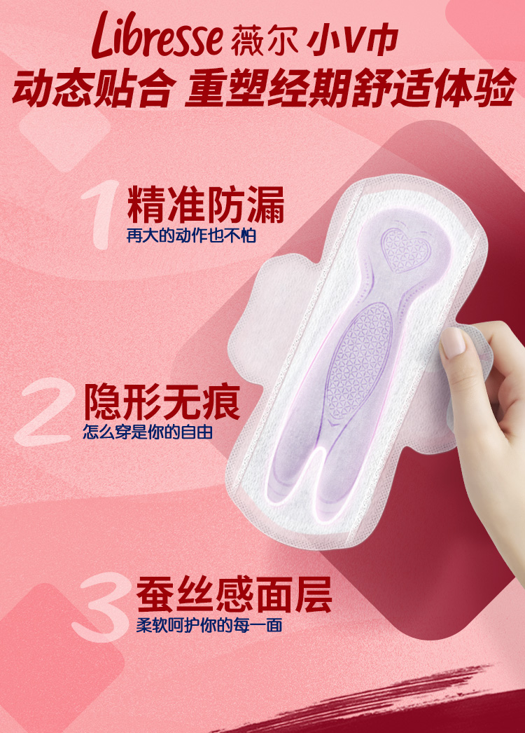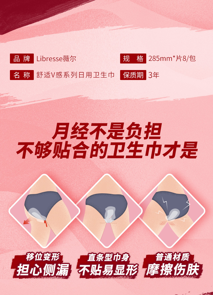 Libresse薇尔舒适V感285加长日用8片极薄棉柔卫生巾