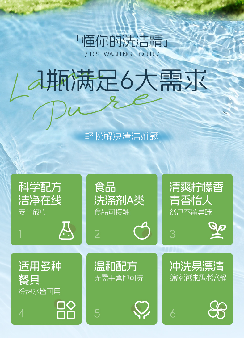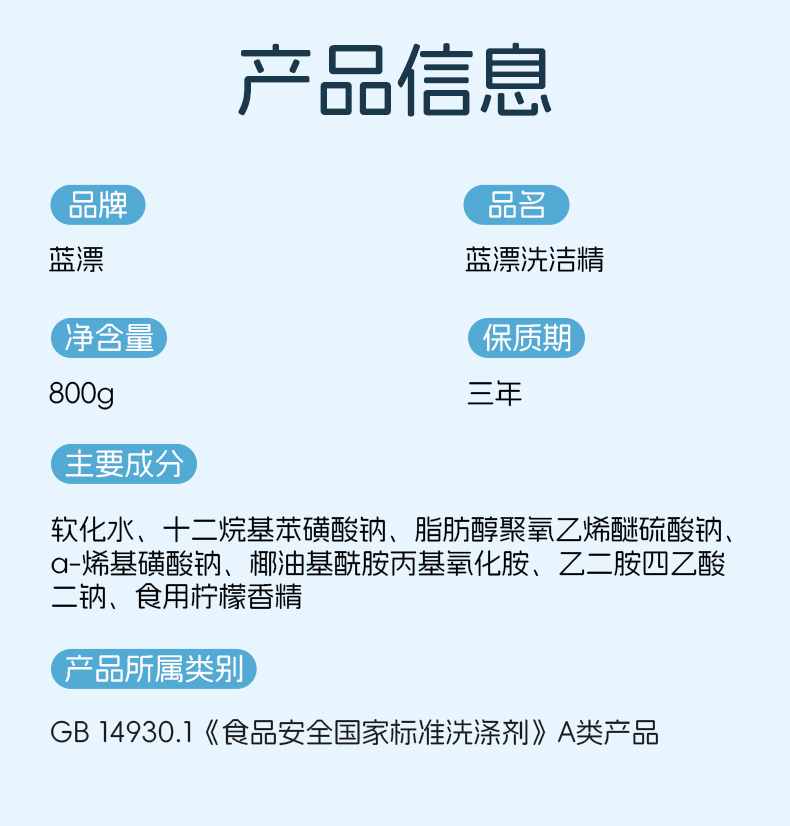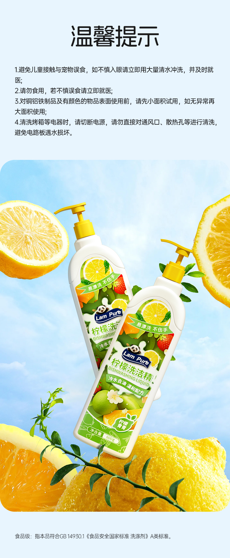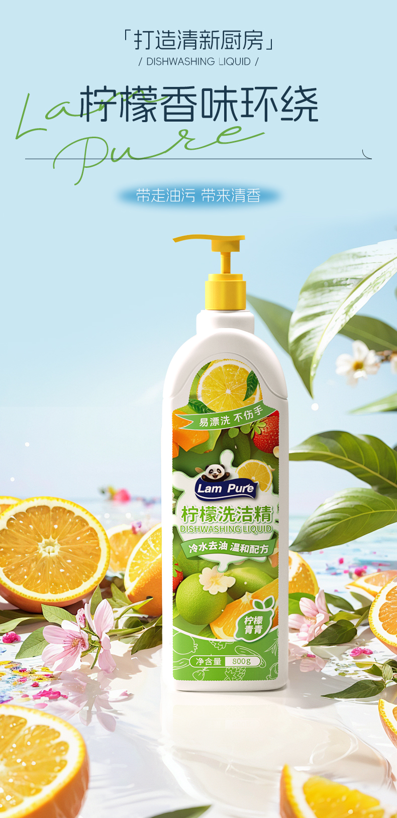 【蓝漂】柠檬洗洁精800g 家用实惠装 去油去腥味 清香厨房餐具碗筷清洁