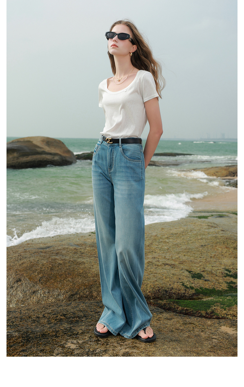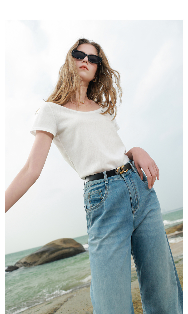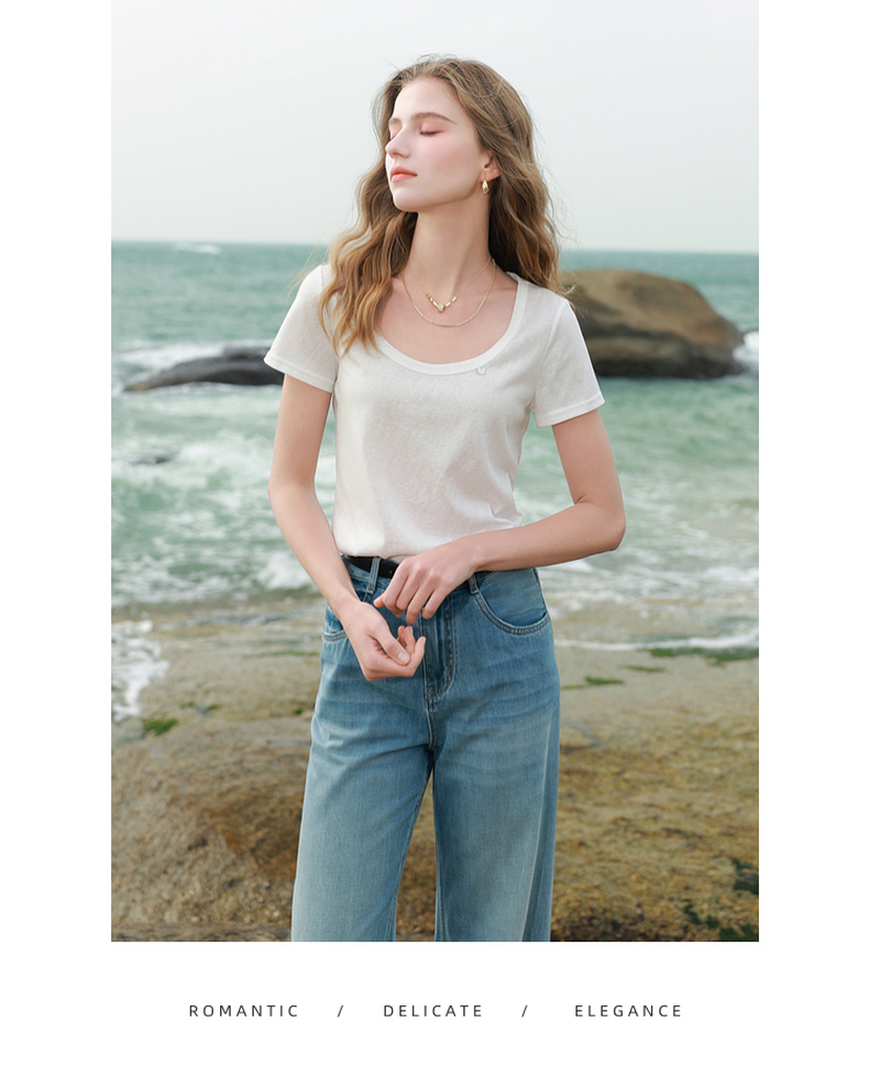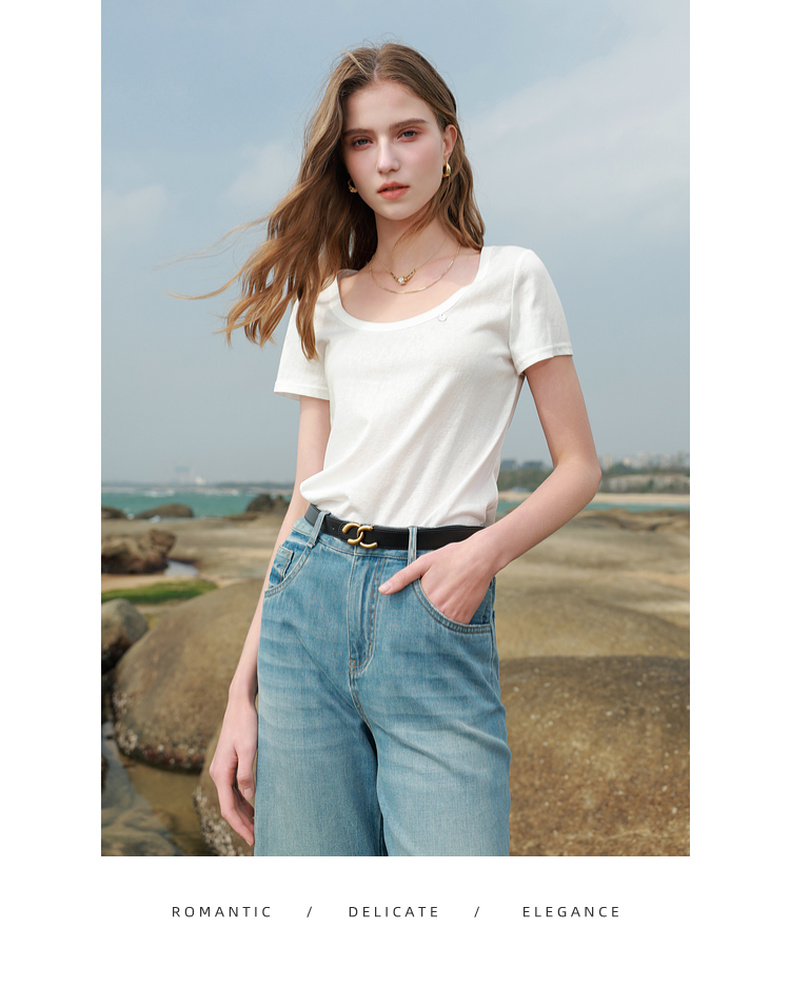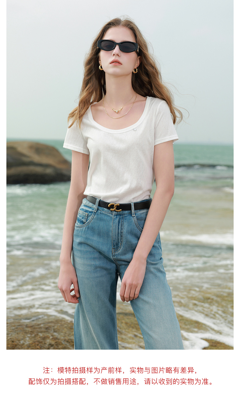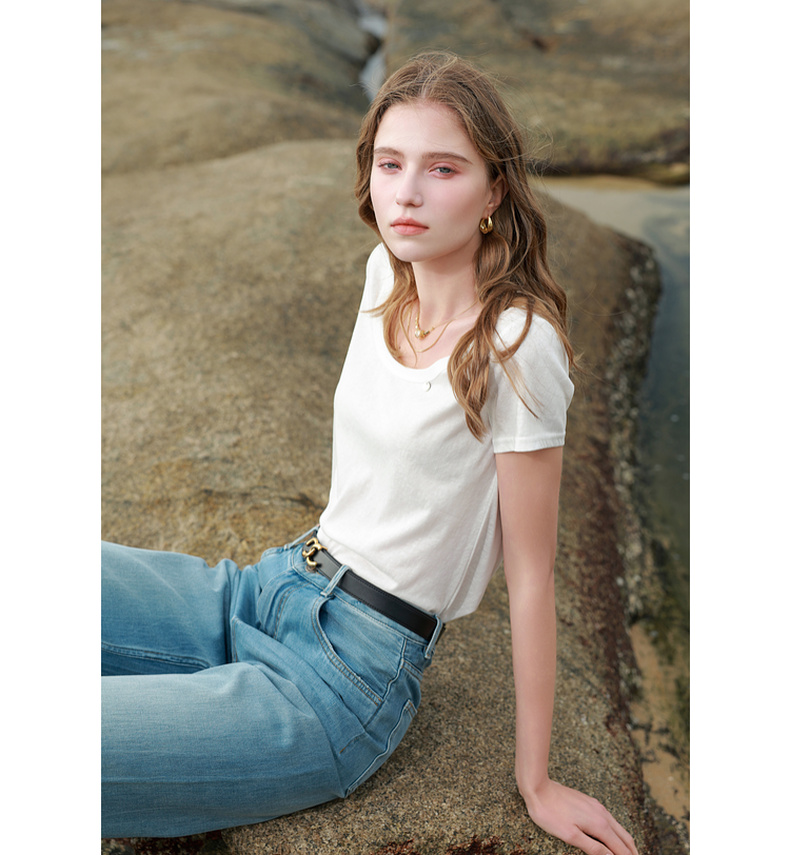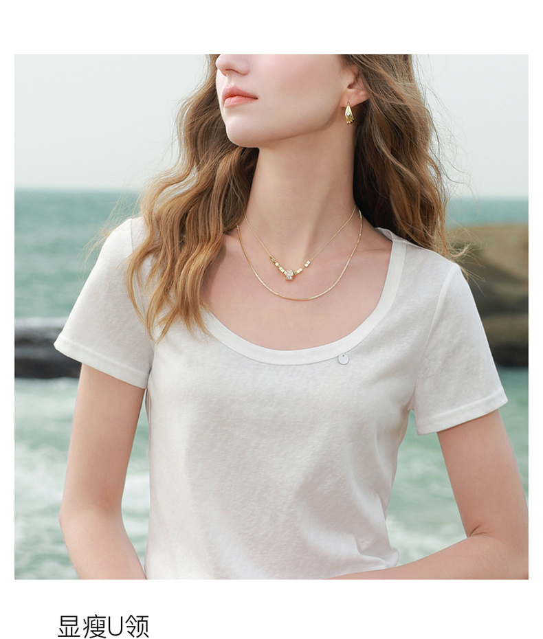 三彩2025春季新款莱赛尔基础白T恤套头衫正肩短袖上衣休闲M