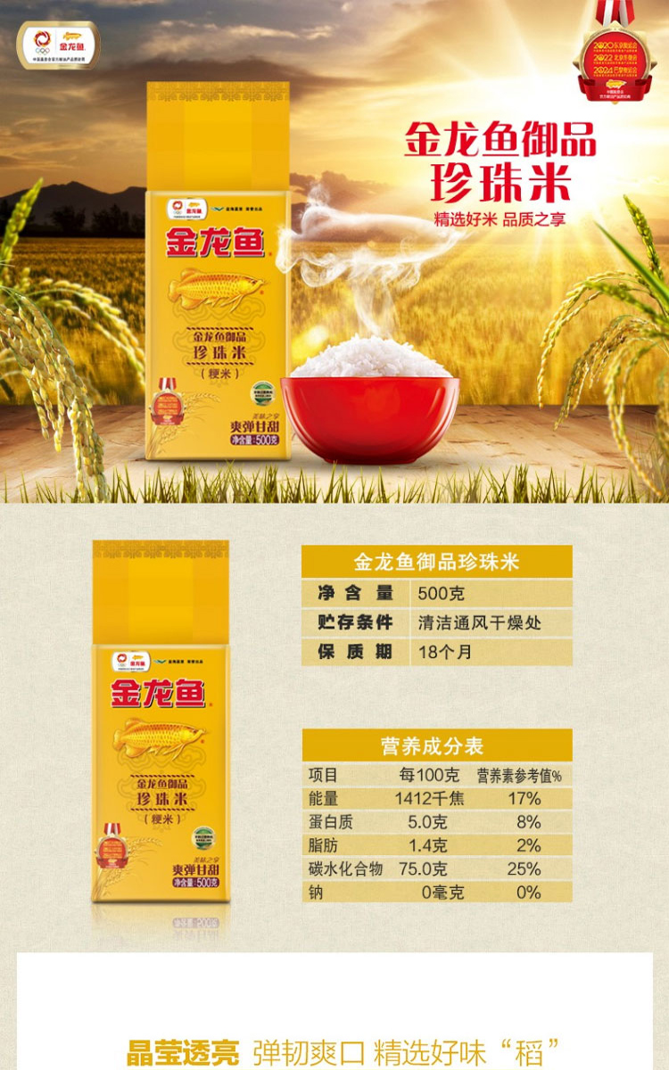 胡姬花古法小榨花生油400ml+金龙鱼御品珍珠米500g