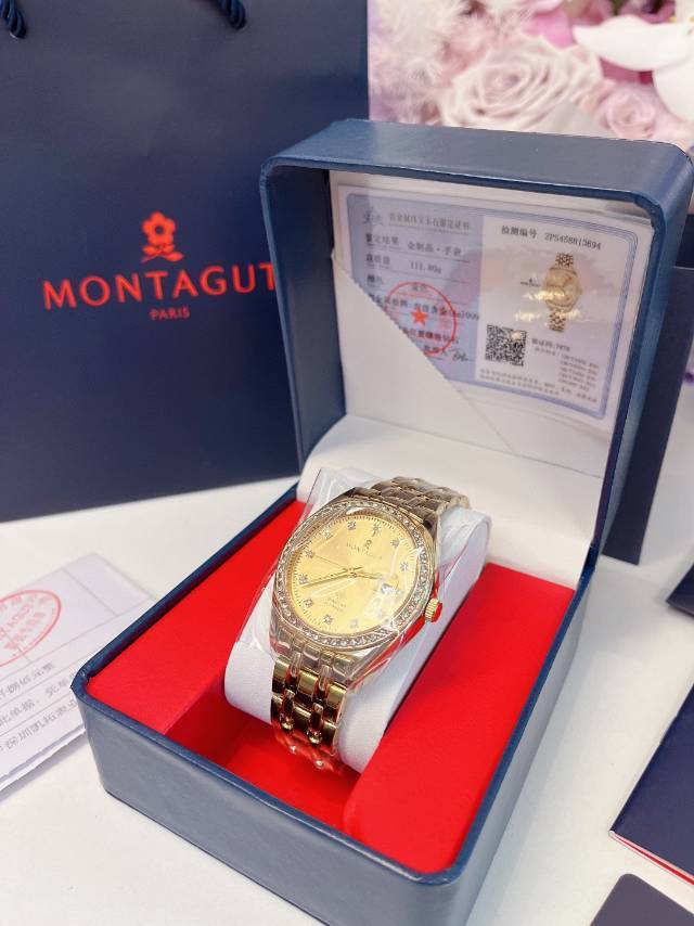 MONTAGUT梦特娇日志飞轮真金日历男表