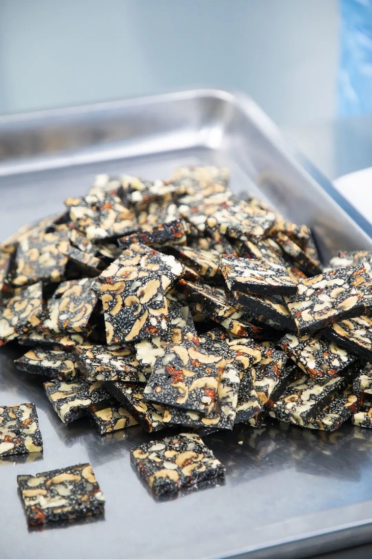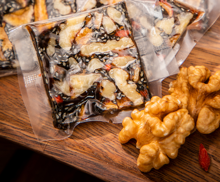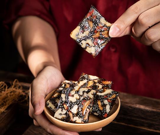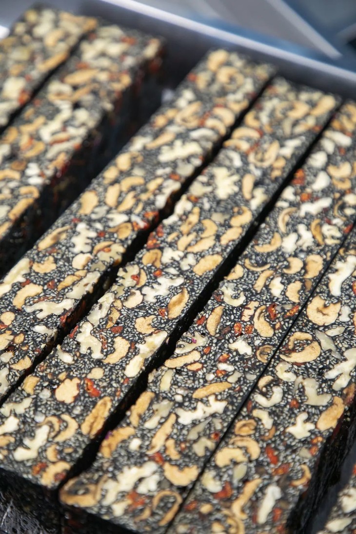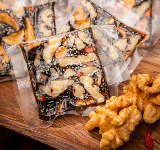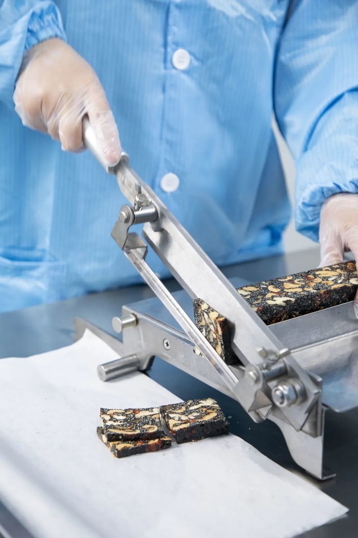 把阿胶糕压实后,需要继续低温冷却12小时,才能使糕体凝固,这样做出来的阿胶糕吃起来软糯Q弹,冷却完成就可以切片啦,最后塑封装袋。