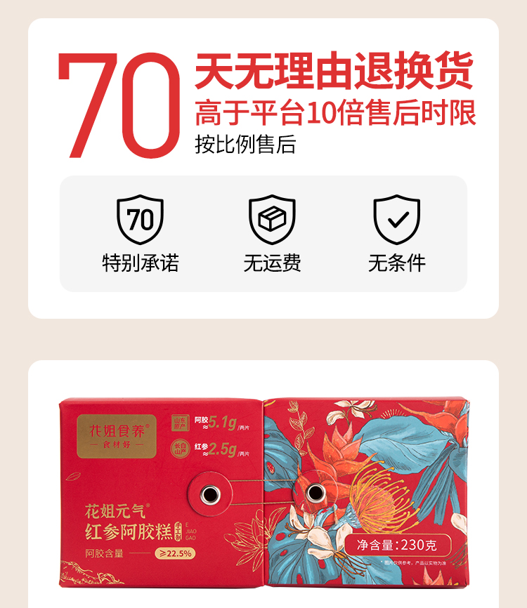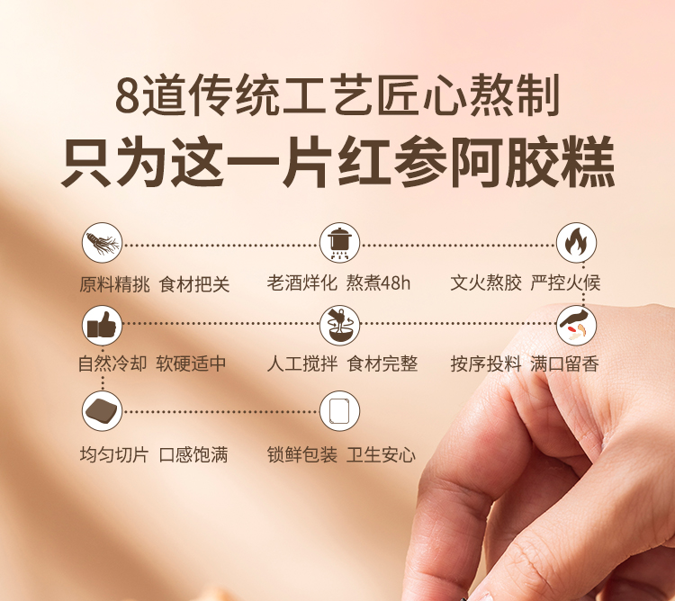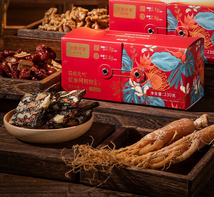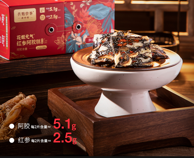 红参偏苦,口感不好,花姐的团队不断得试吃,研发,改进配方,光是产地就来回跑了好几趟,最终这款口感不错的阿胶糕才出现在大家面前。