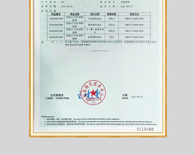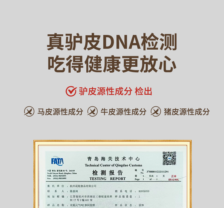 正宗阿胶一般都产自山东东阿,花姐的红参阿胶糕,100%保证使用整张驴皮熬制,很是纯正。