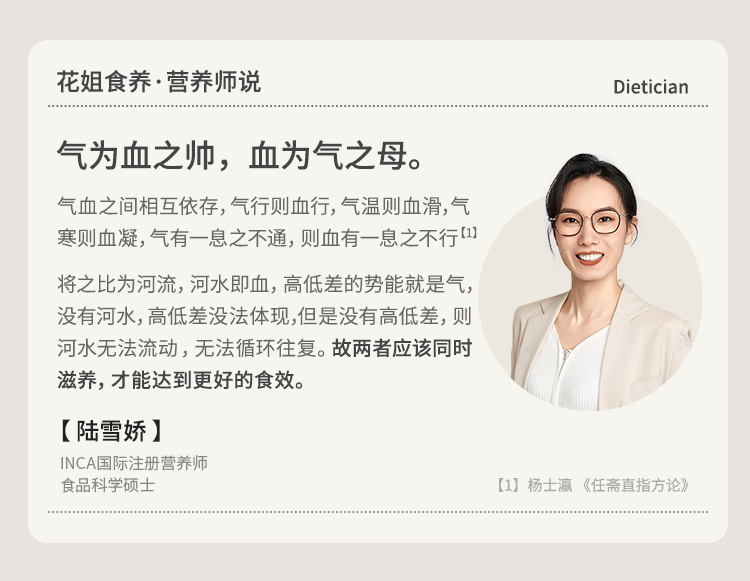 只补血不补气,会导致血液运行滞重,只有气血同时滋补,才能达到更好的食效。