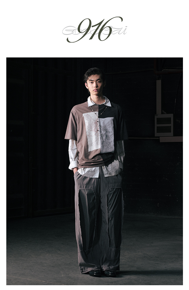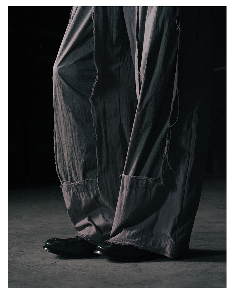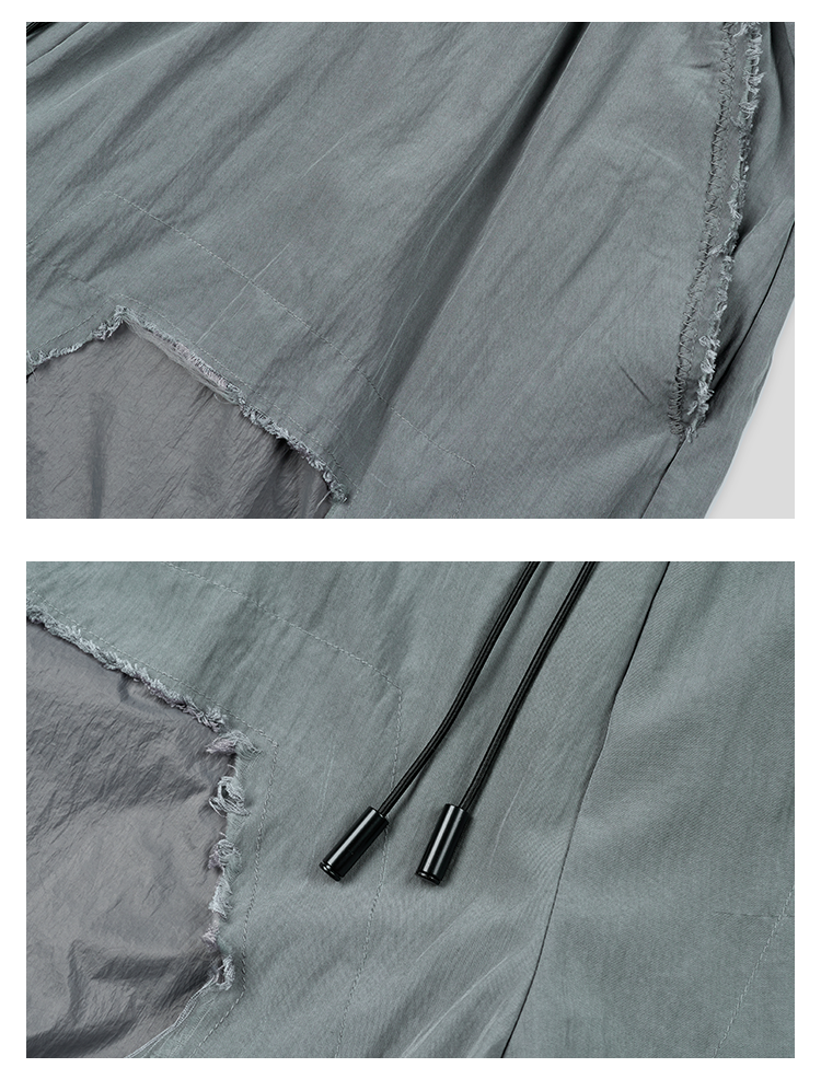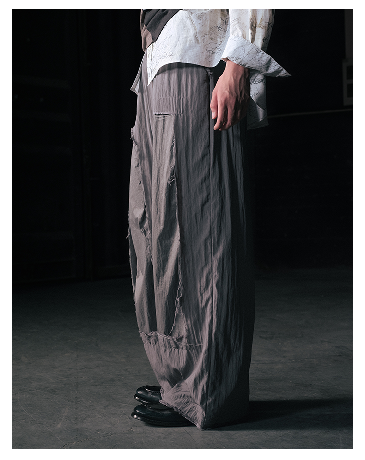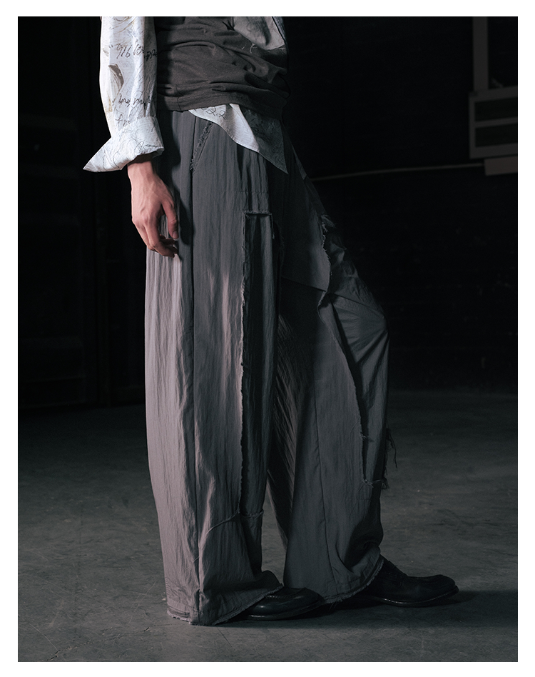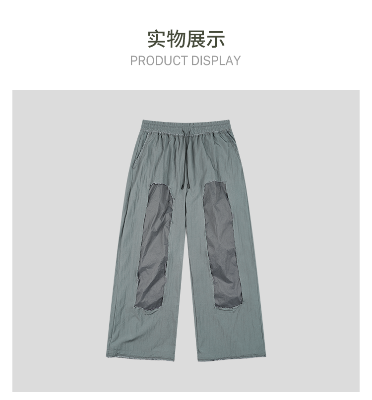 GOODBAI 916 拼接双层破坏毛边抽绳直筒休闲长裤