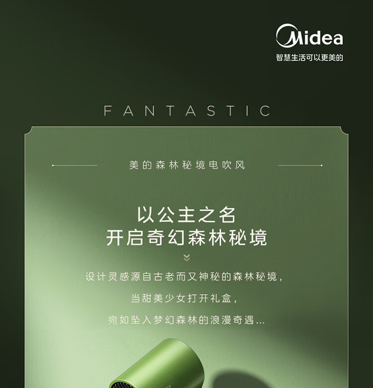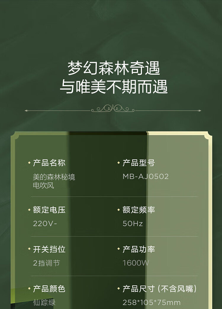 美的(Midea)吹风机8000万负离子电吹风吹风机家用速干护发吹风筒节日礼物推荐MB-AJ0502