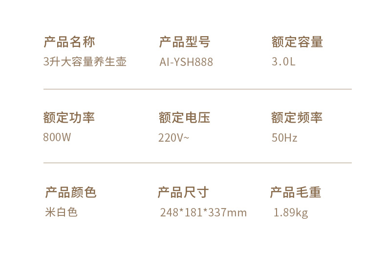 艾青春 3升大容量养生壶 AI-YSH888(带滤网)