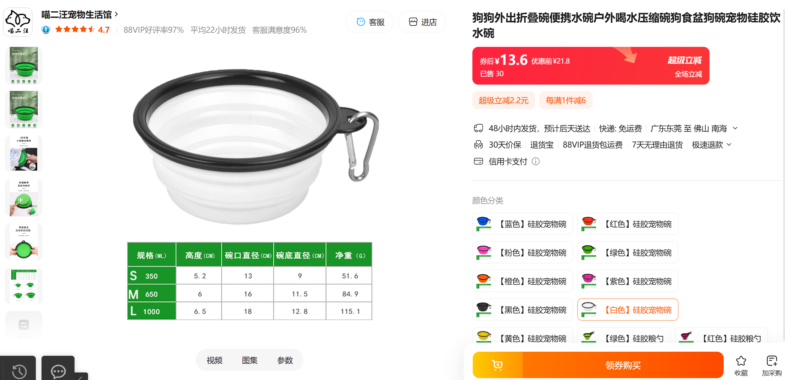 宠物便携式TPE折叠碗 小号 猫狗通用 户外饮水碗粮盆