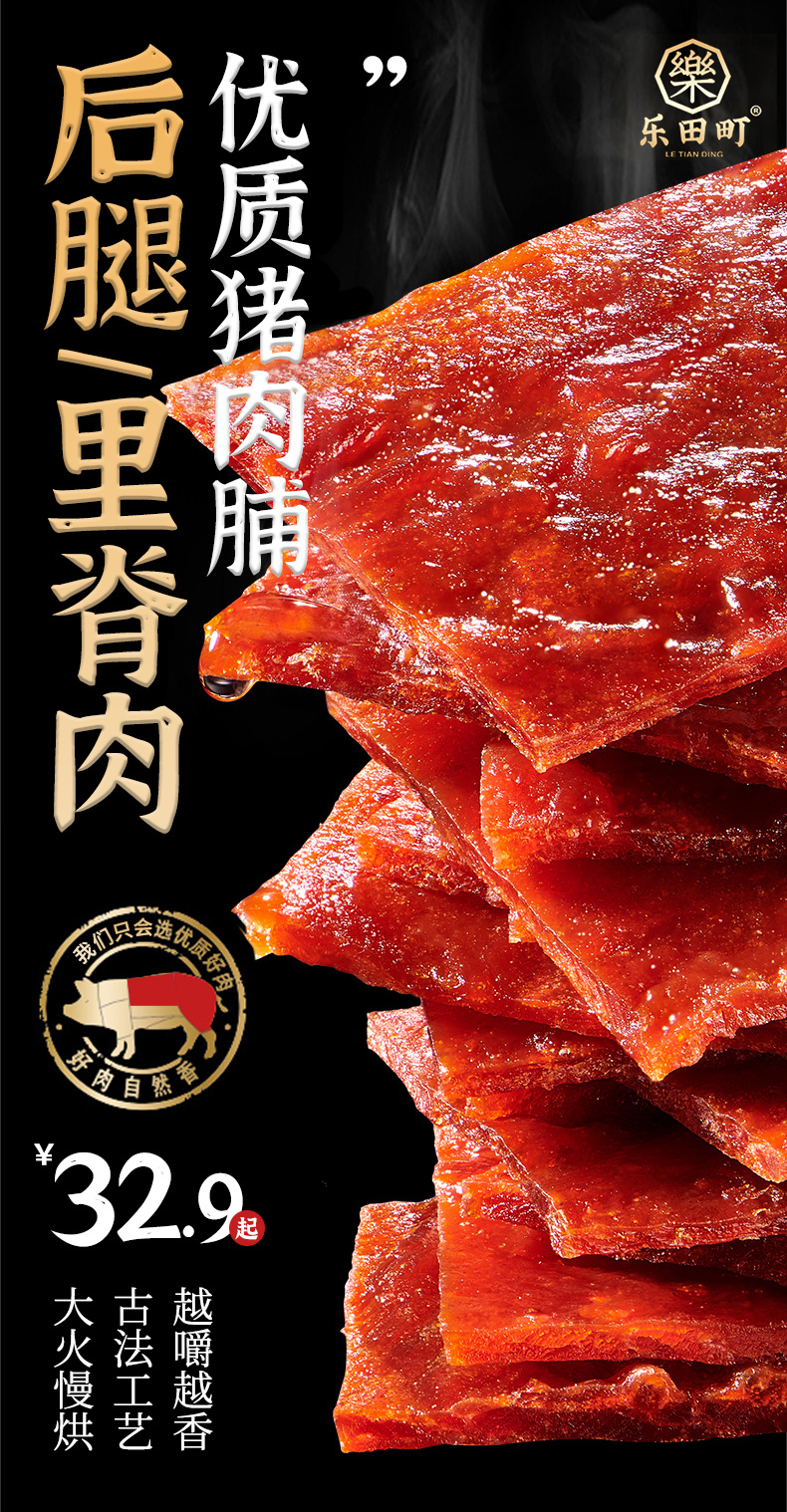 【乐田町吊龙猪肉脯】💥盒马同款,东方甄选推荐🥩比脸还大的猪肉脯👉 100%原切里脊肉~不干不柴 👉2袋潮汕猪肉脯仅需💰32.9元!