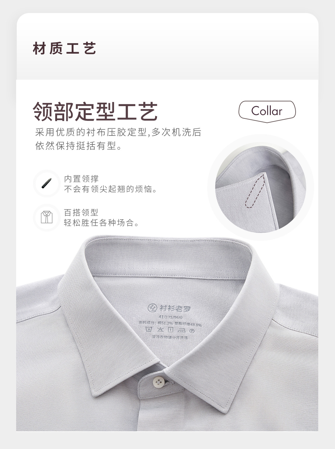 【凌志T5】暗扣领竹纤维抗皱长袖衬衫M666S