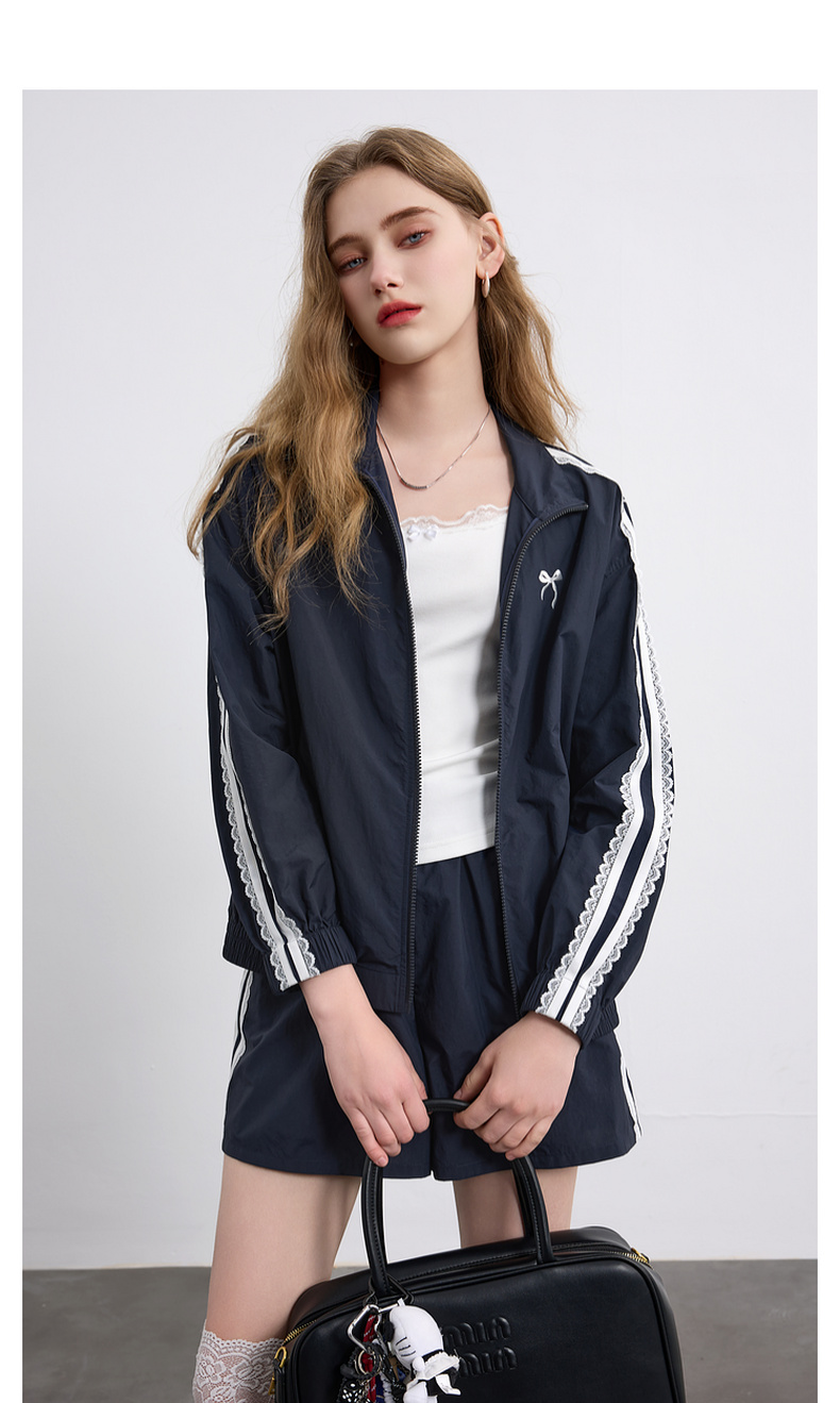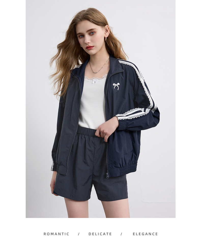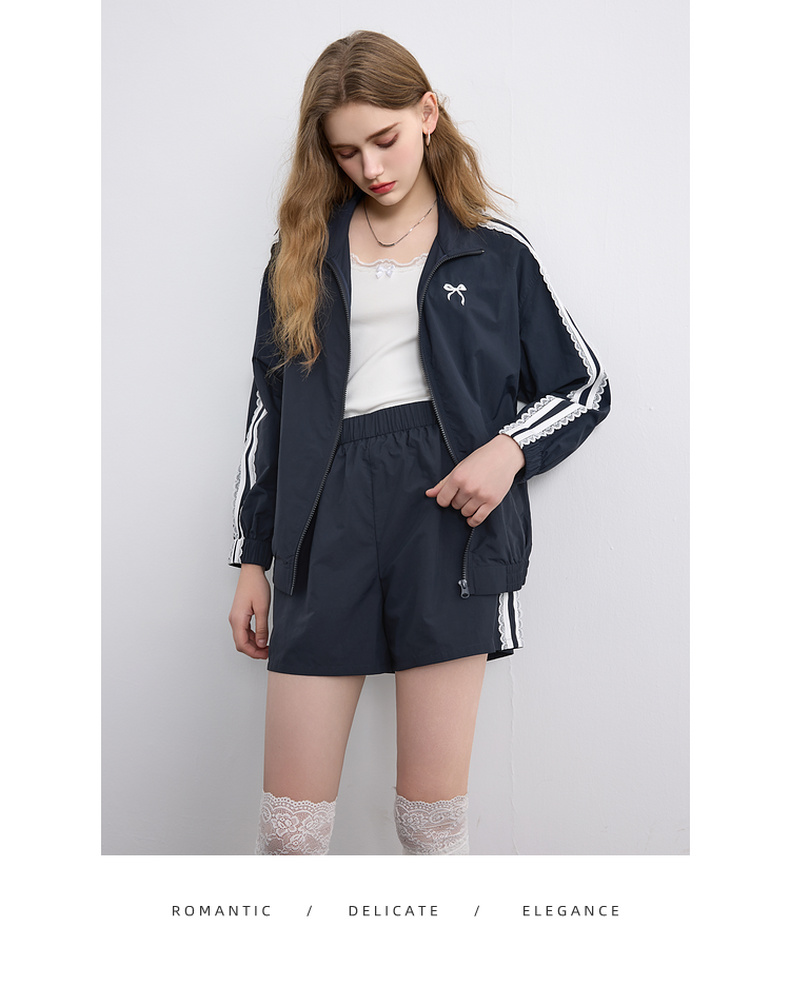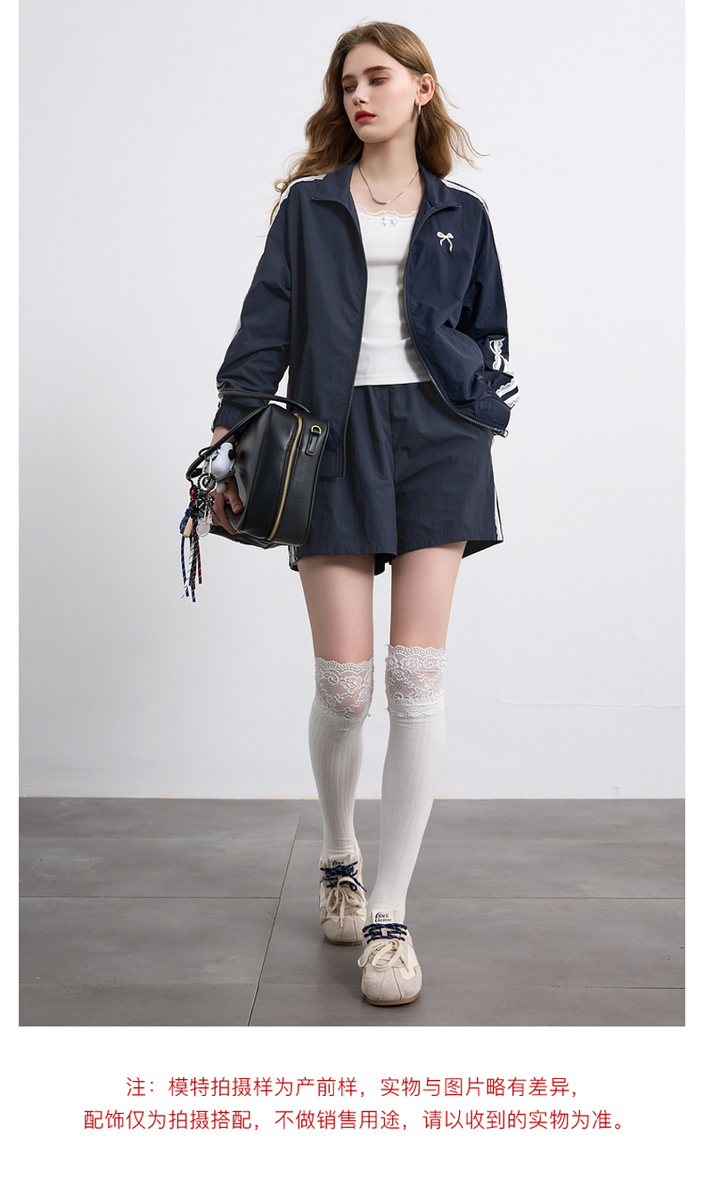 三彩独醒2026春季新款休闲套装芭蕾风外套蝴蝶结刺绣宽松短裤F