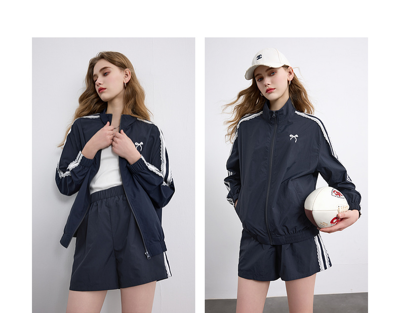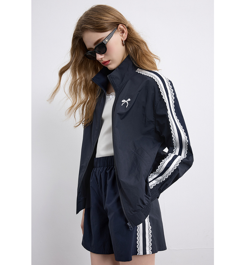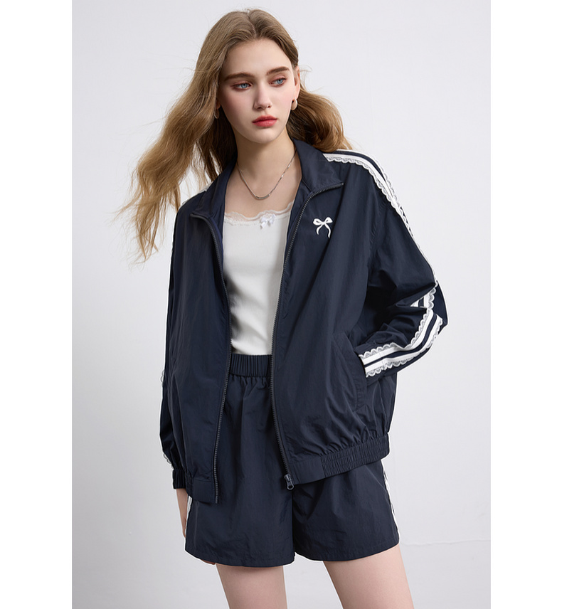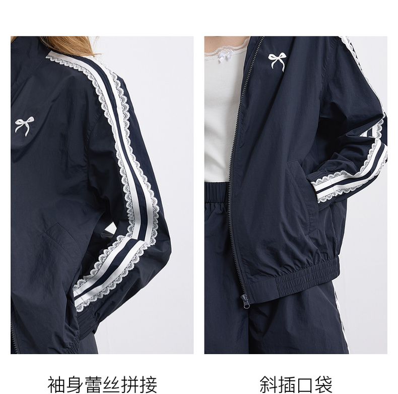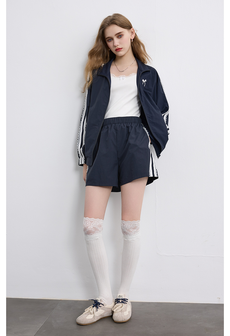 三彩独醒2026春季新款休闲套装芭蕾风外套蝴蝶结刺绣宽松短裤F