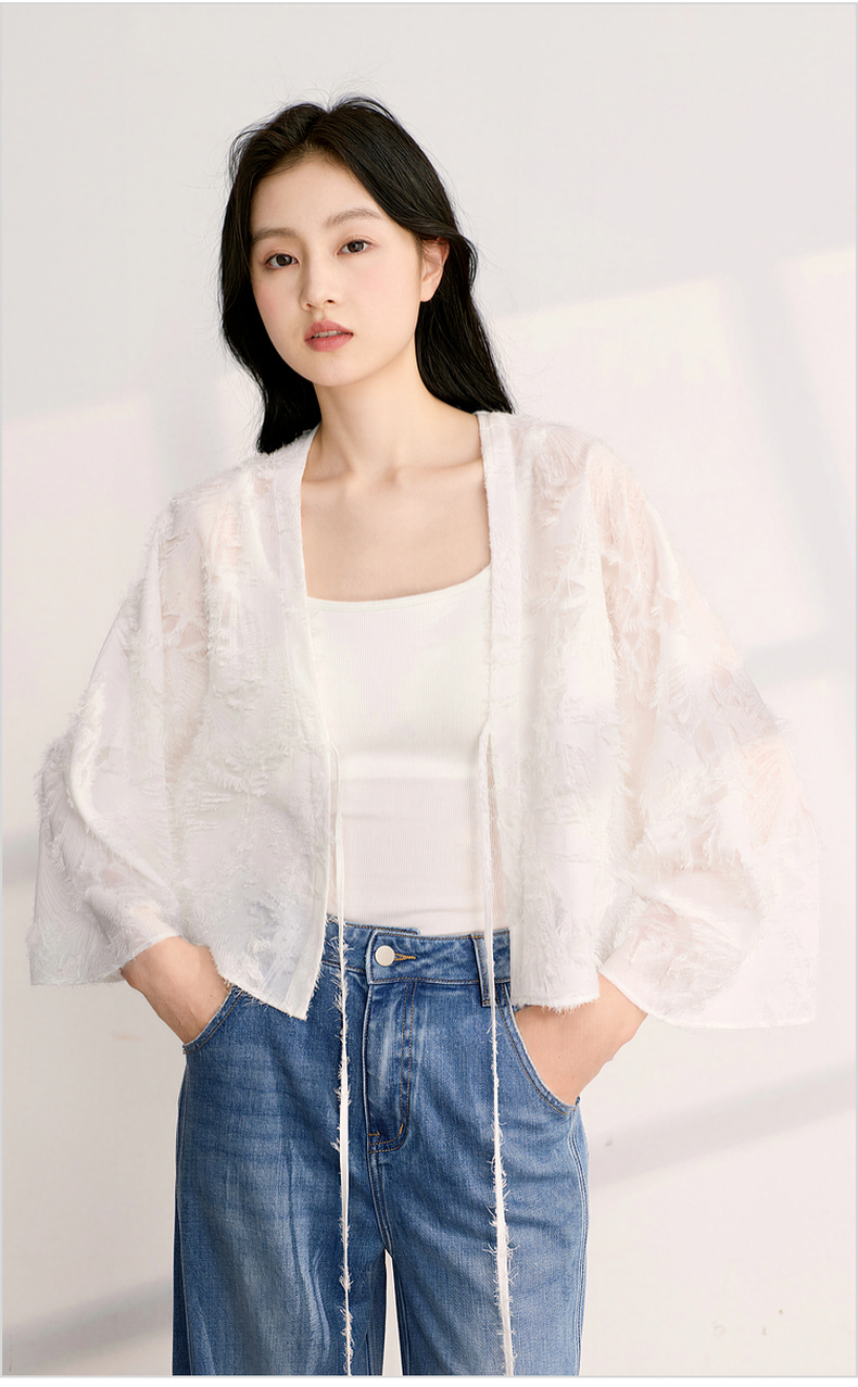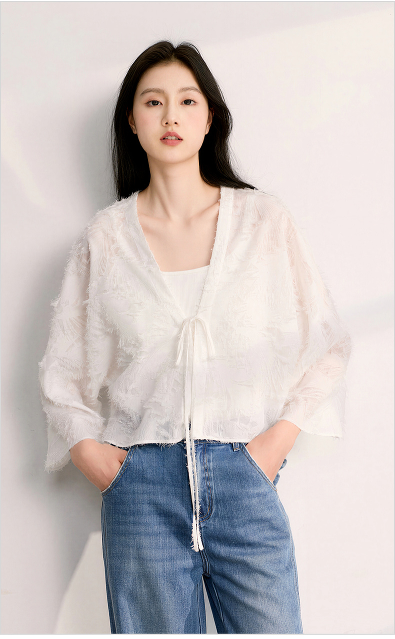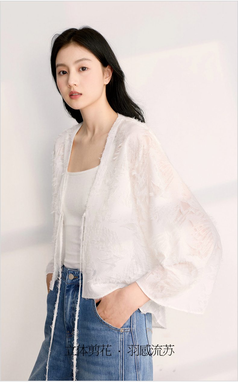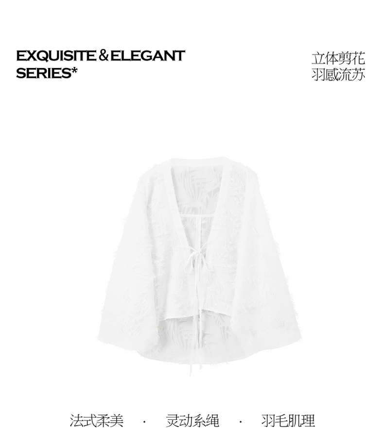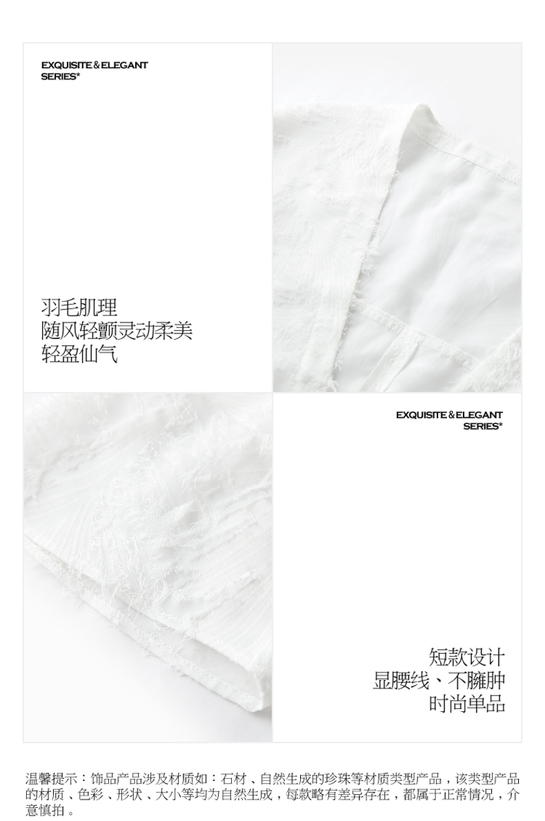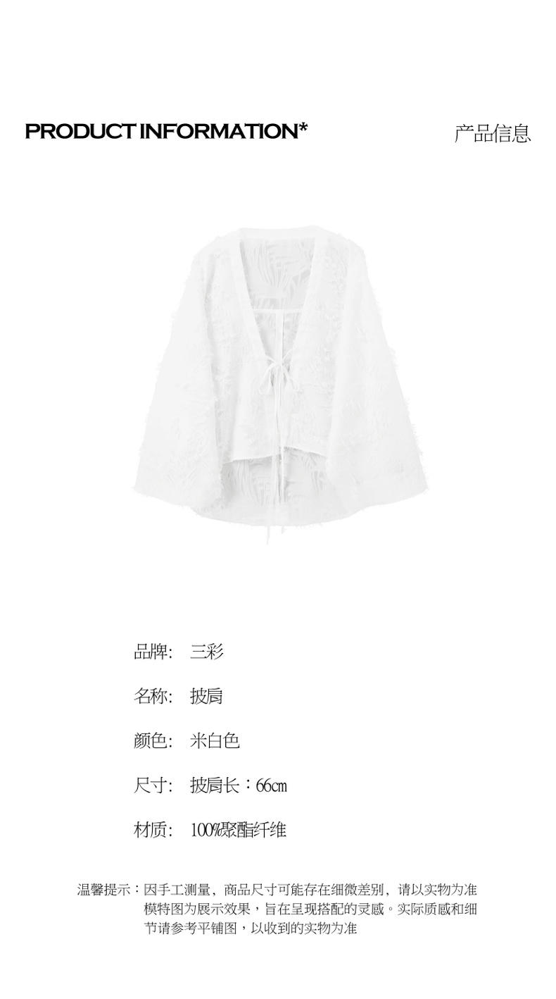 三彩2026新款法式羽毛肌理披肩外搭米白柔美系绳短款仙气氛围约会