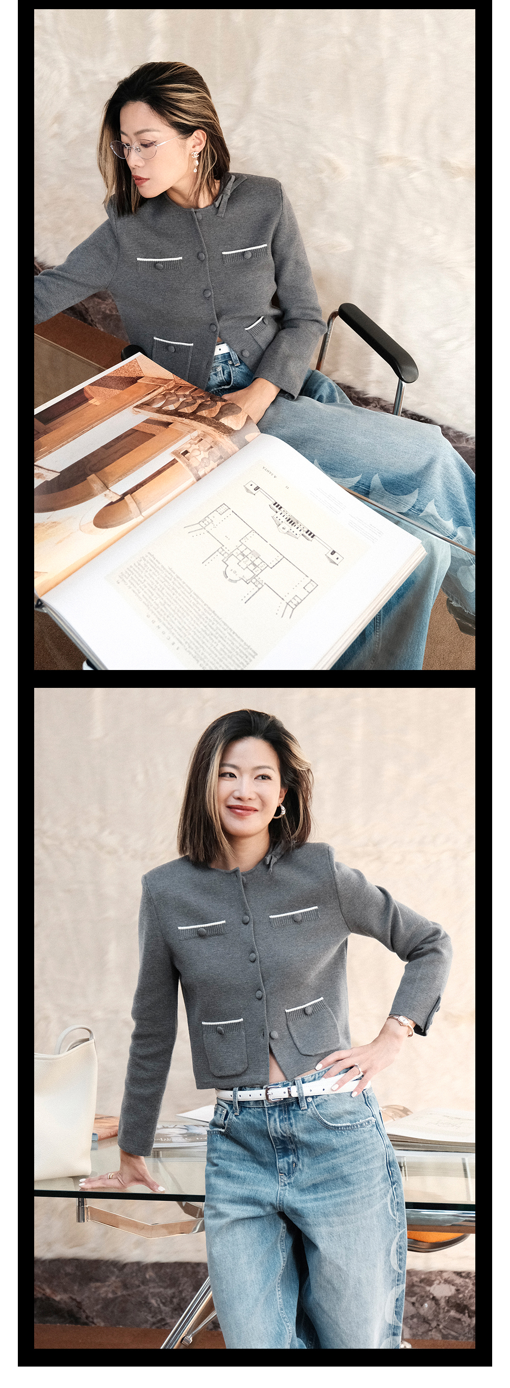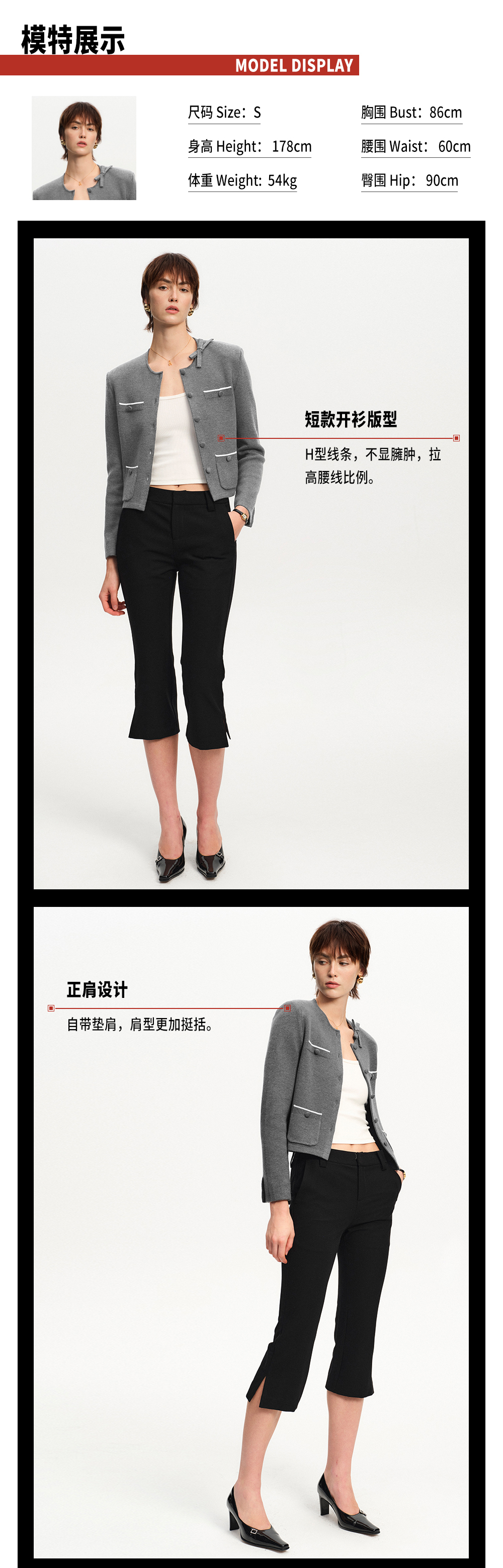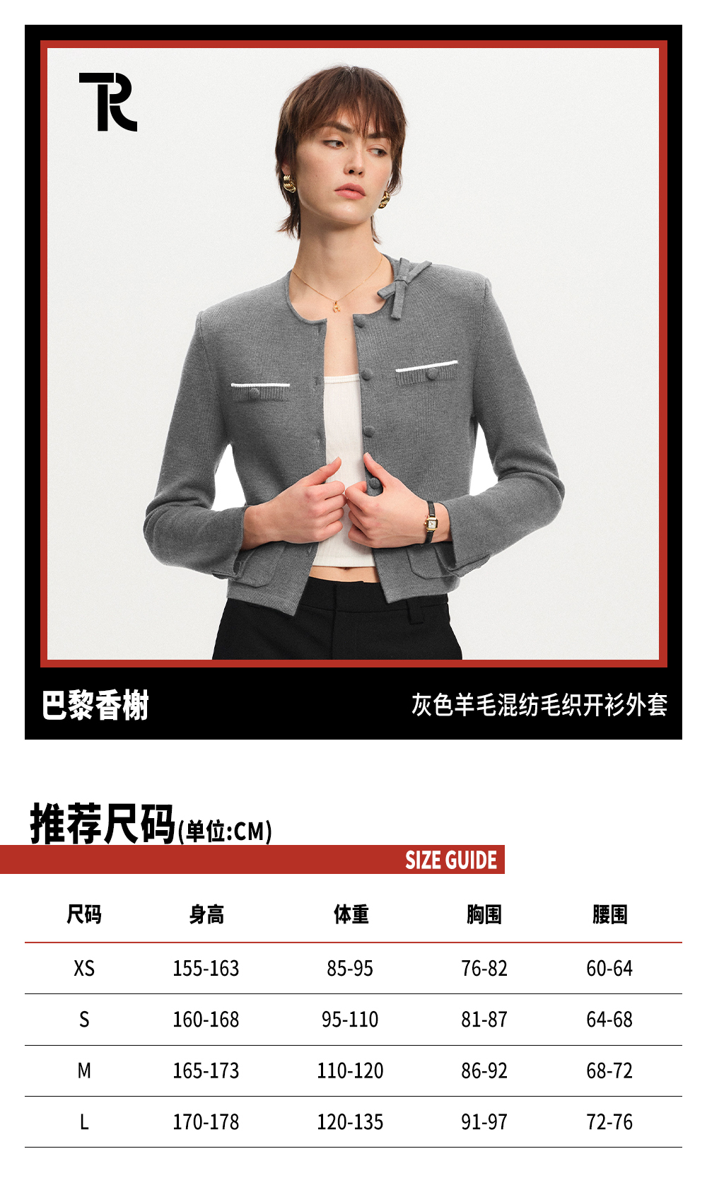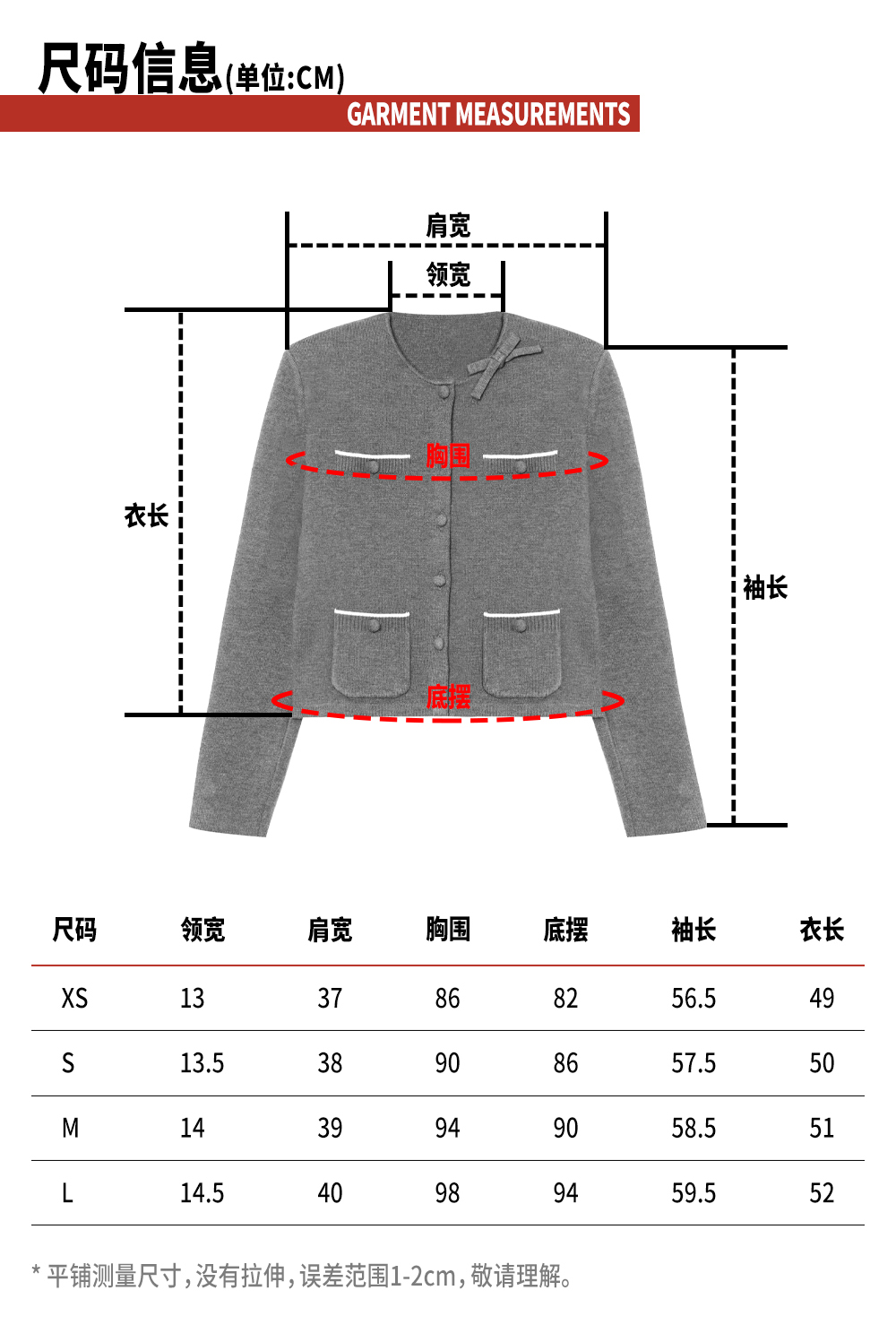 TR她热 巴黎香榭 灰色羊毛针织小香风蝴蝶结复古正肩短款开衫外套