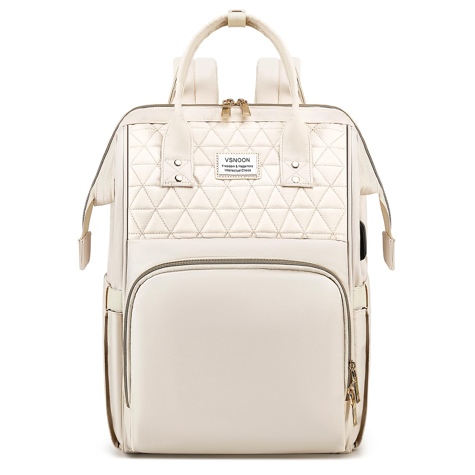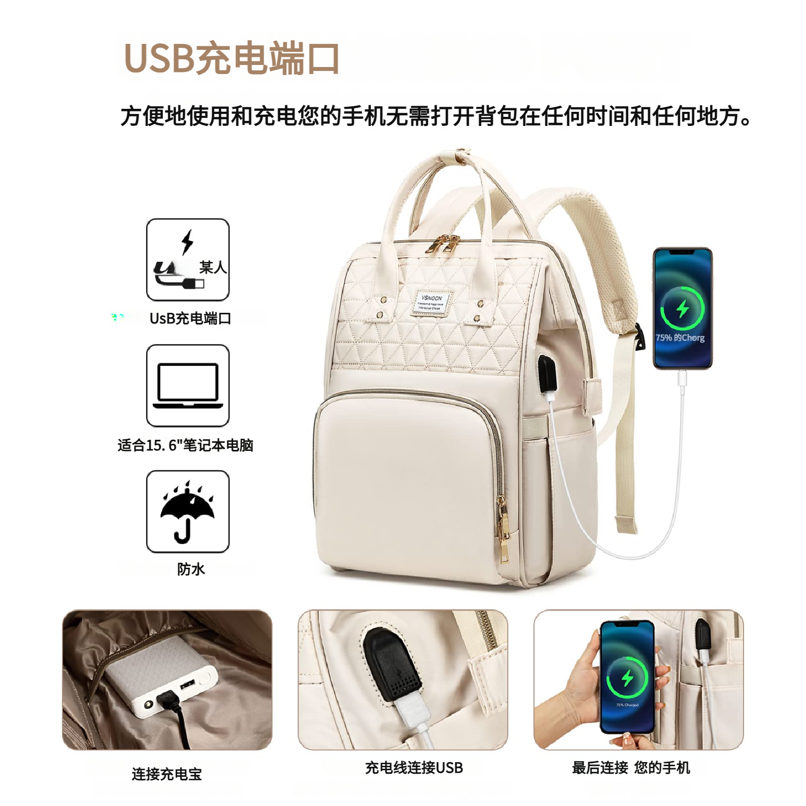 英国 VSNOON 双肩包 商务笔记本电脑包 带USB充电端口 防水背包X001WEW9J1 米白色