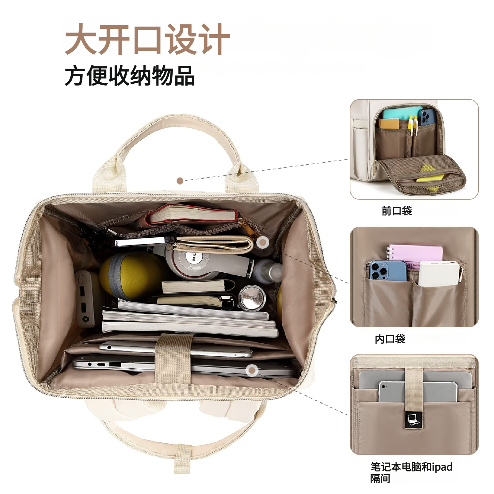 便携式手提把设计让这款笔记本电脑背包易于携带。工作背包背面的行李带可插入并固定在行李把手上,旅行时解放您的双手。时尚青春的造型,无论是旅行还是工作都轻松适用。