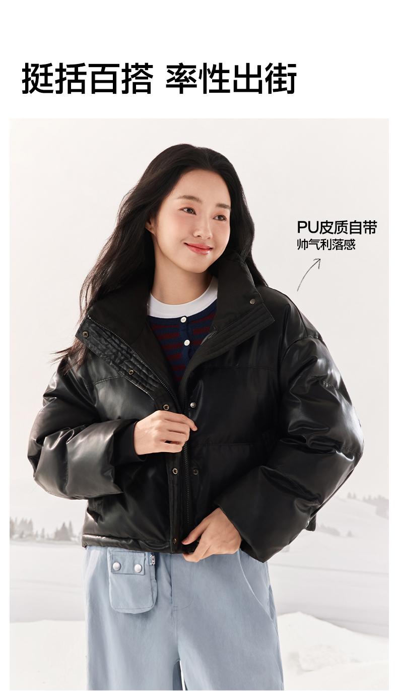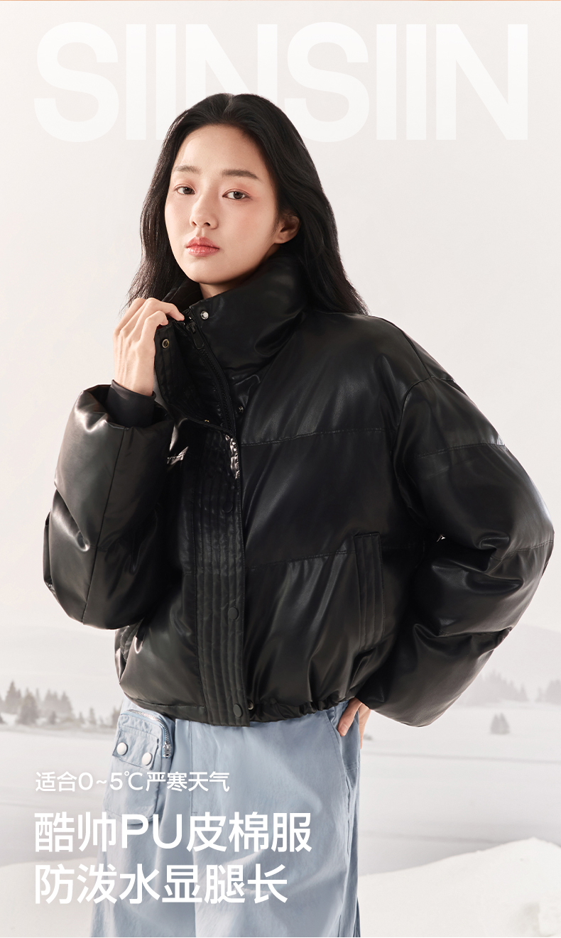 SIINSIIN短款PU皮棉服女士2025冬季新款厚外套棉衣保暖防泼水棉袄