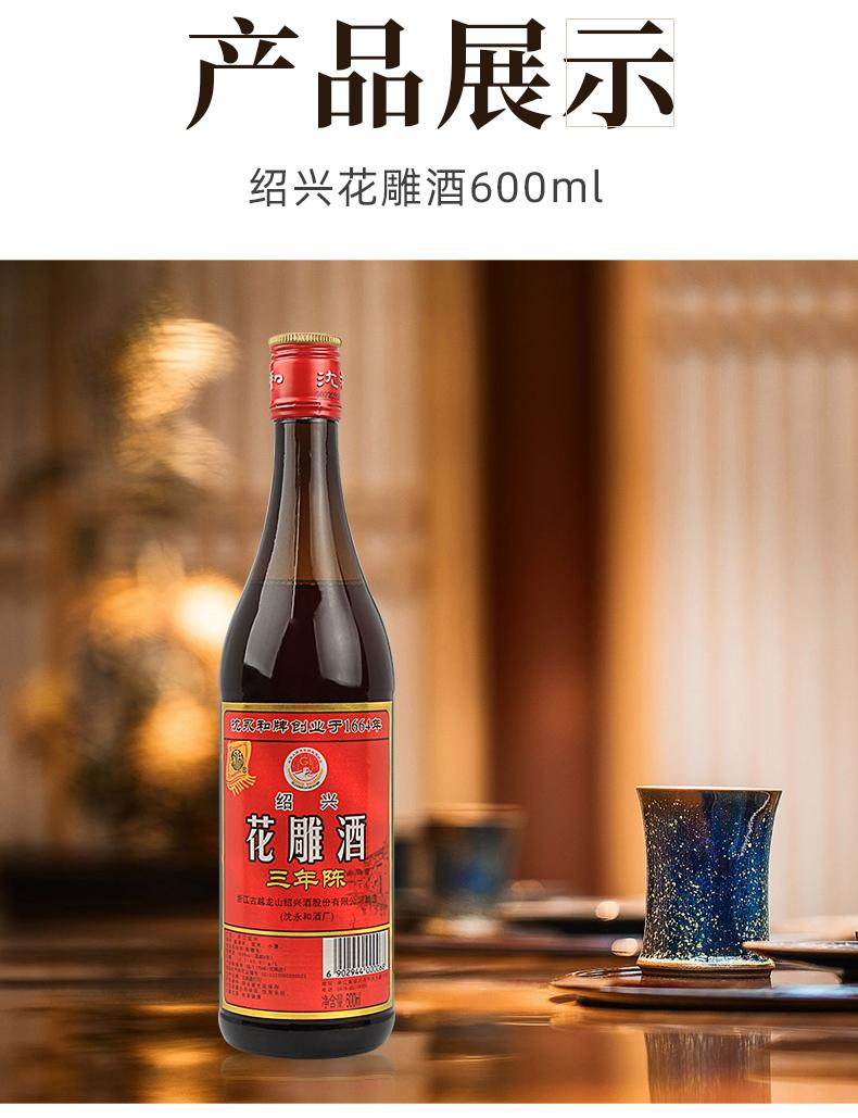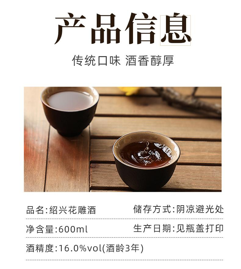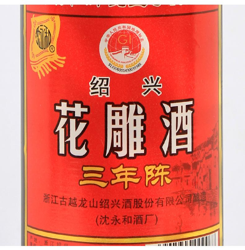 【口粮好酒】古越龙山 绍兴花雕酒 沈永和三年陈 16度 600ml*12瓶整箱(光瓶易碎需拆箱打包不发原箱)