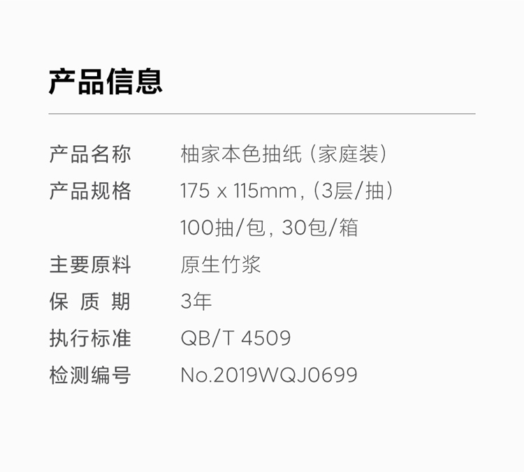 【竹浆本色】柚家 本色抽纸(家庭装) 30包/箱 柔韧厚实湿水不易破