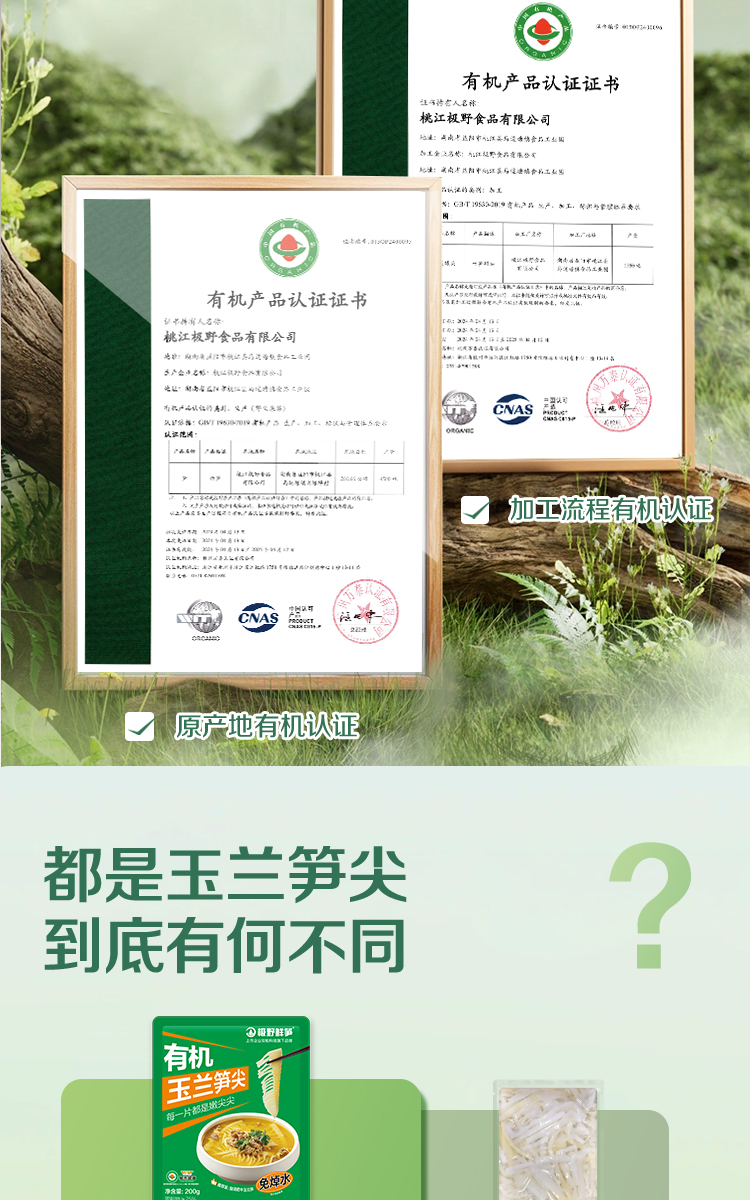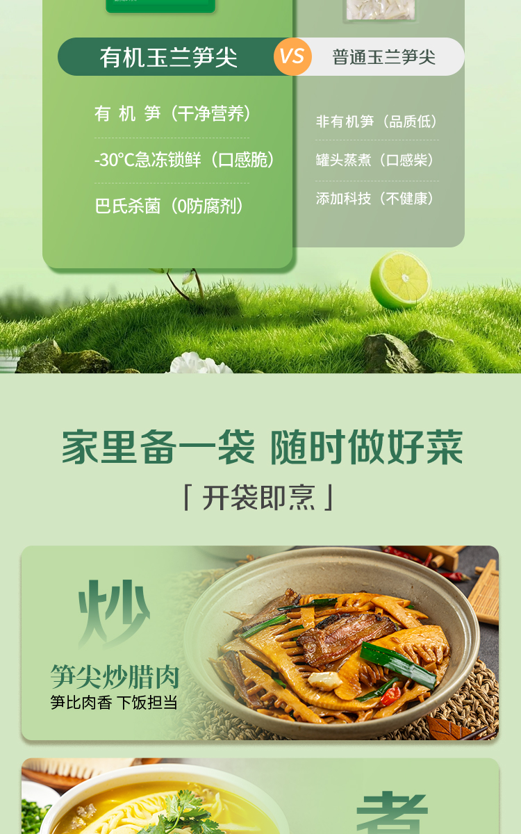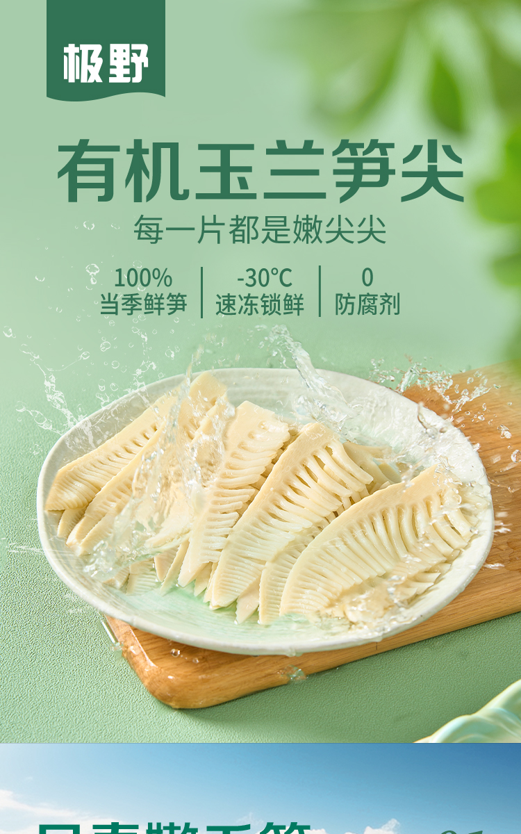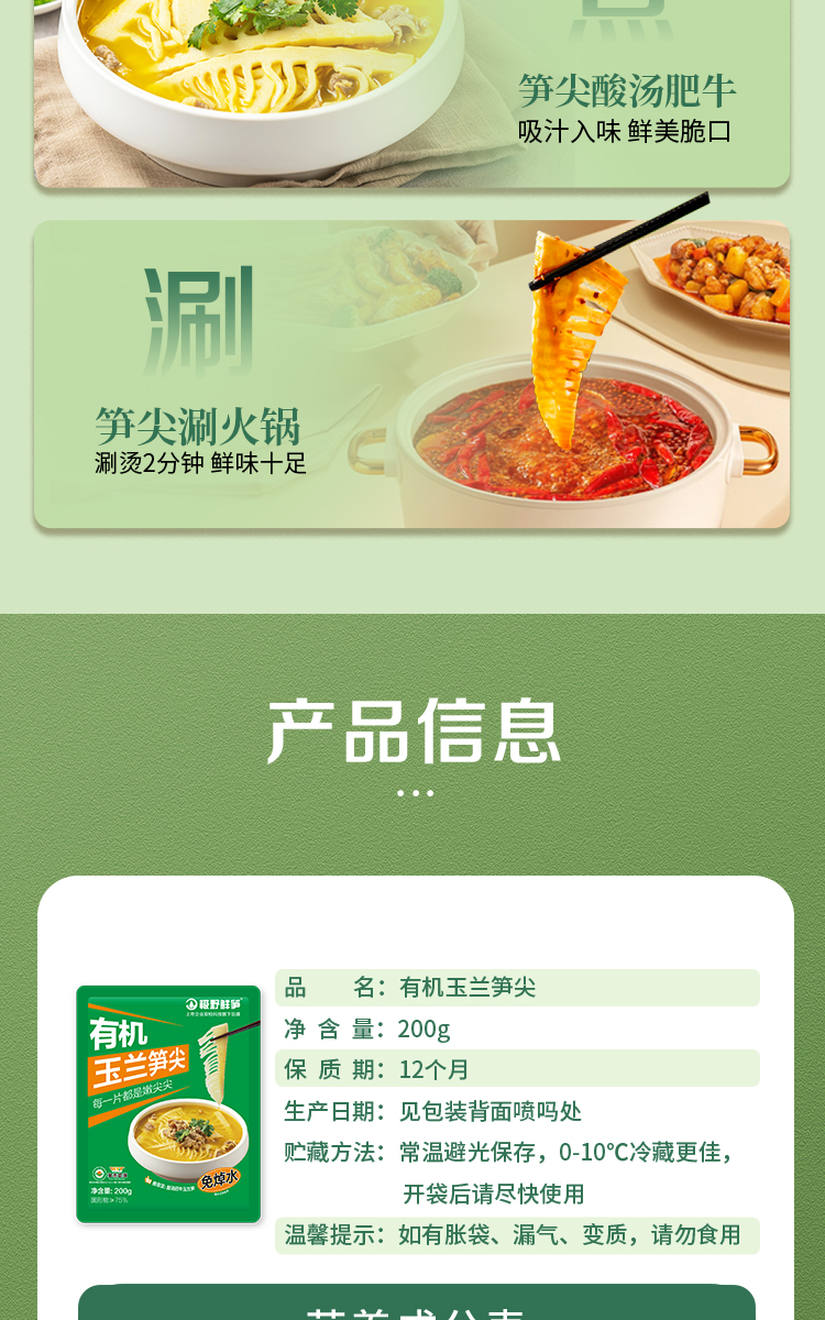 【开袋即烹】极野鲜笋 双有机玉兰笋尖 200g/袋*5袋 全程可溯源 只用嫩笋尖 手工精切