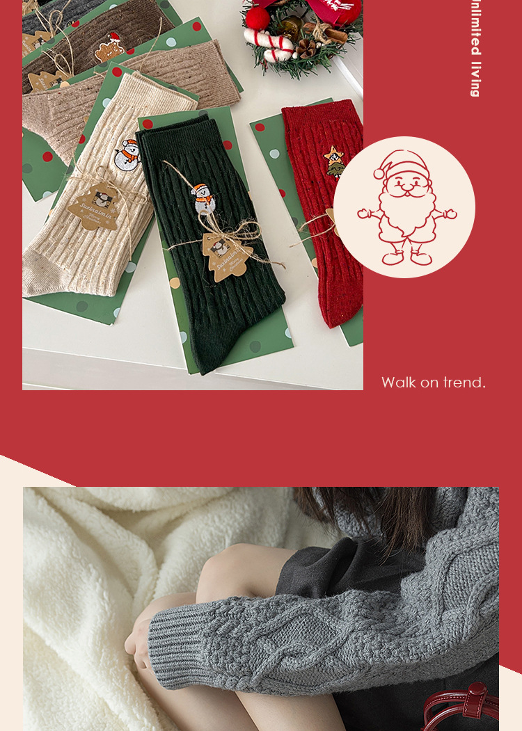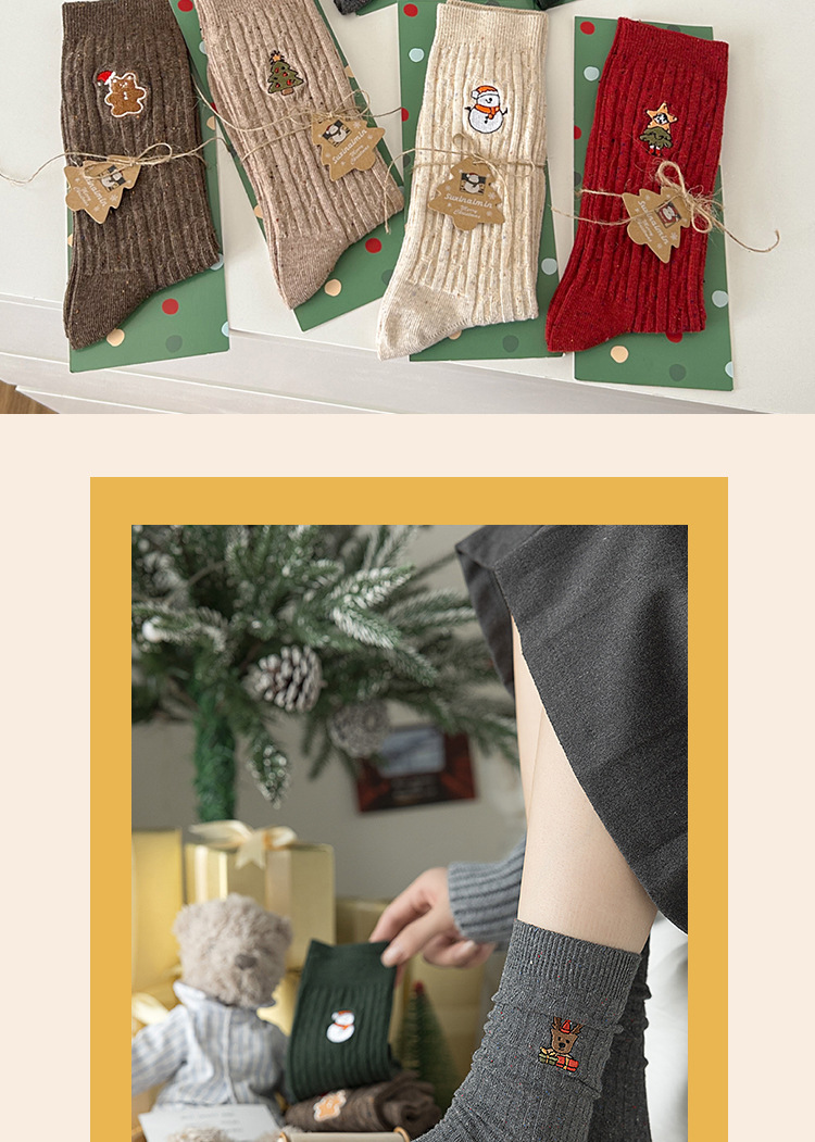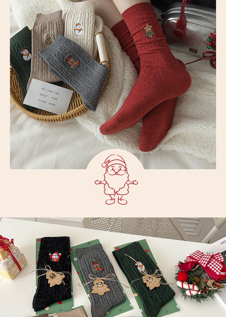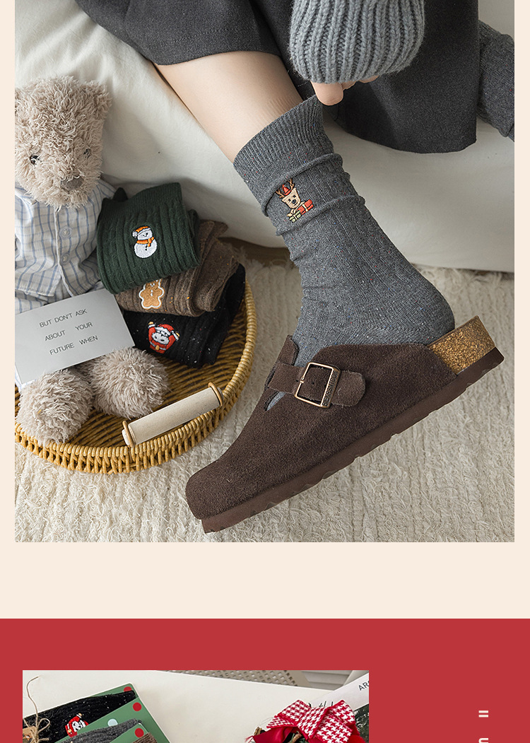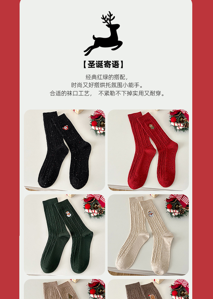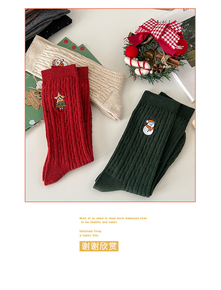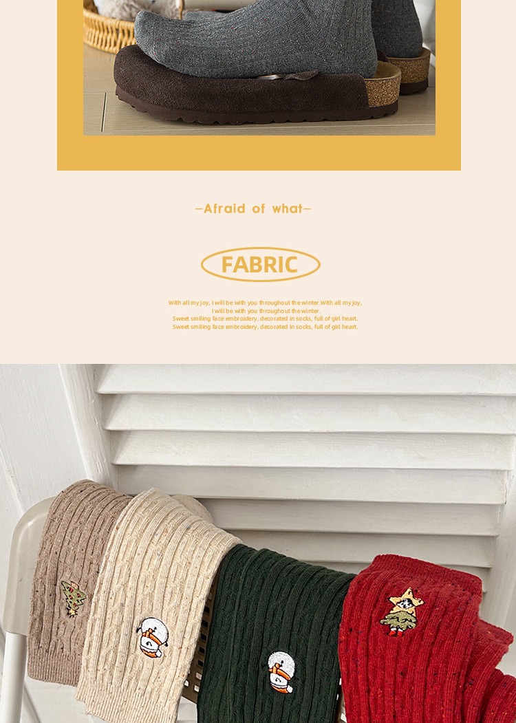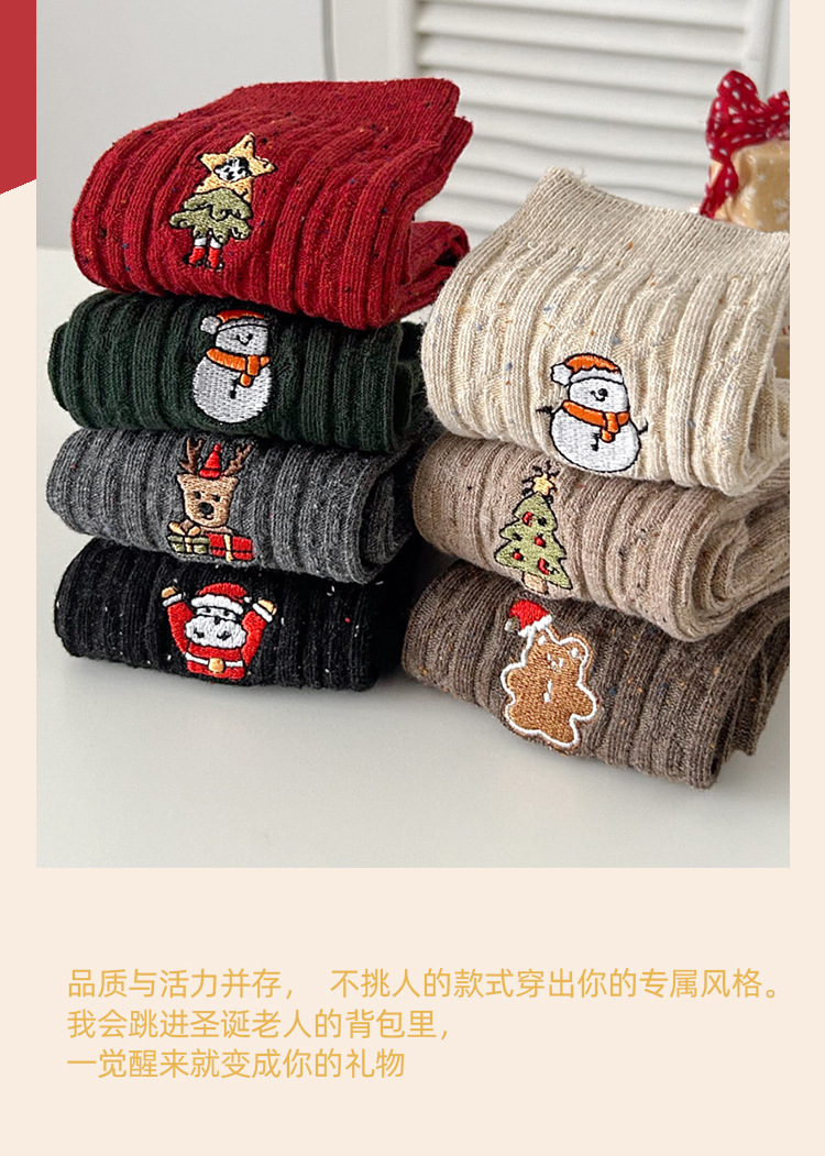 鹿鹿推荐 • 卡通可爱袜!秋冬刺绣麻花纹纯棉中筒袜【贴身衣物不退换】