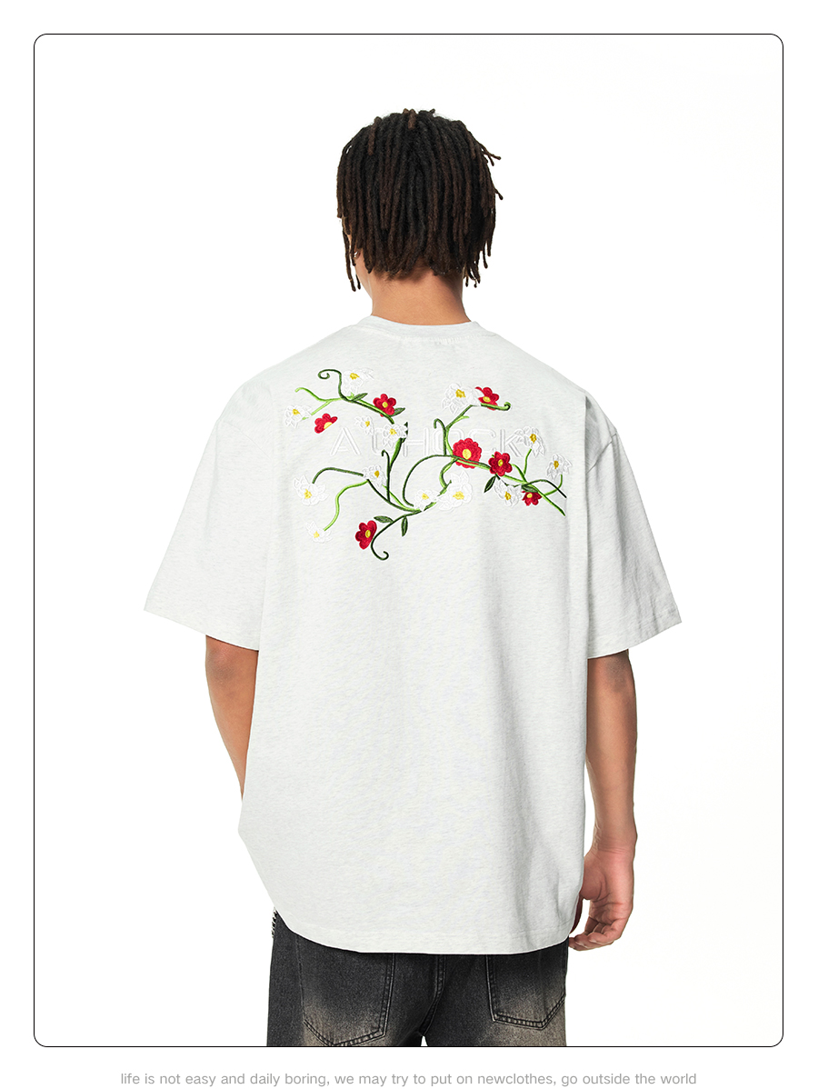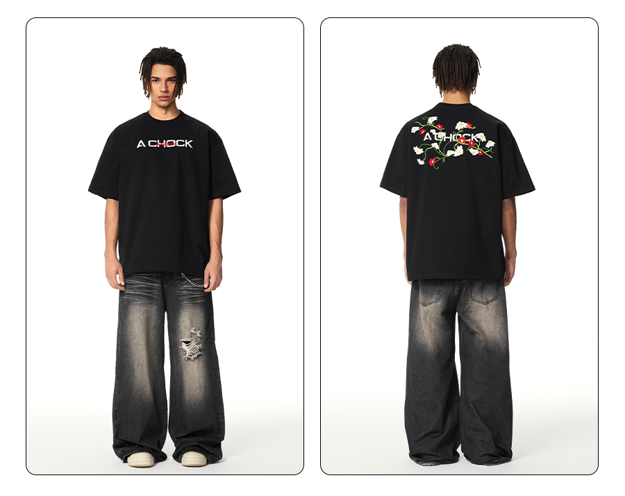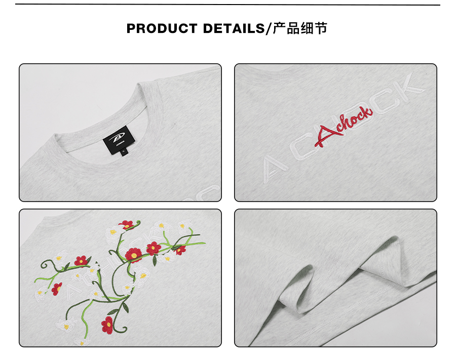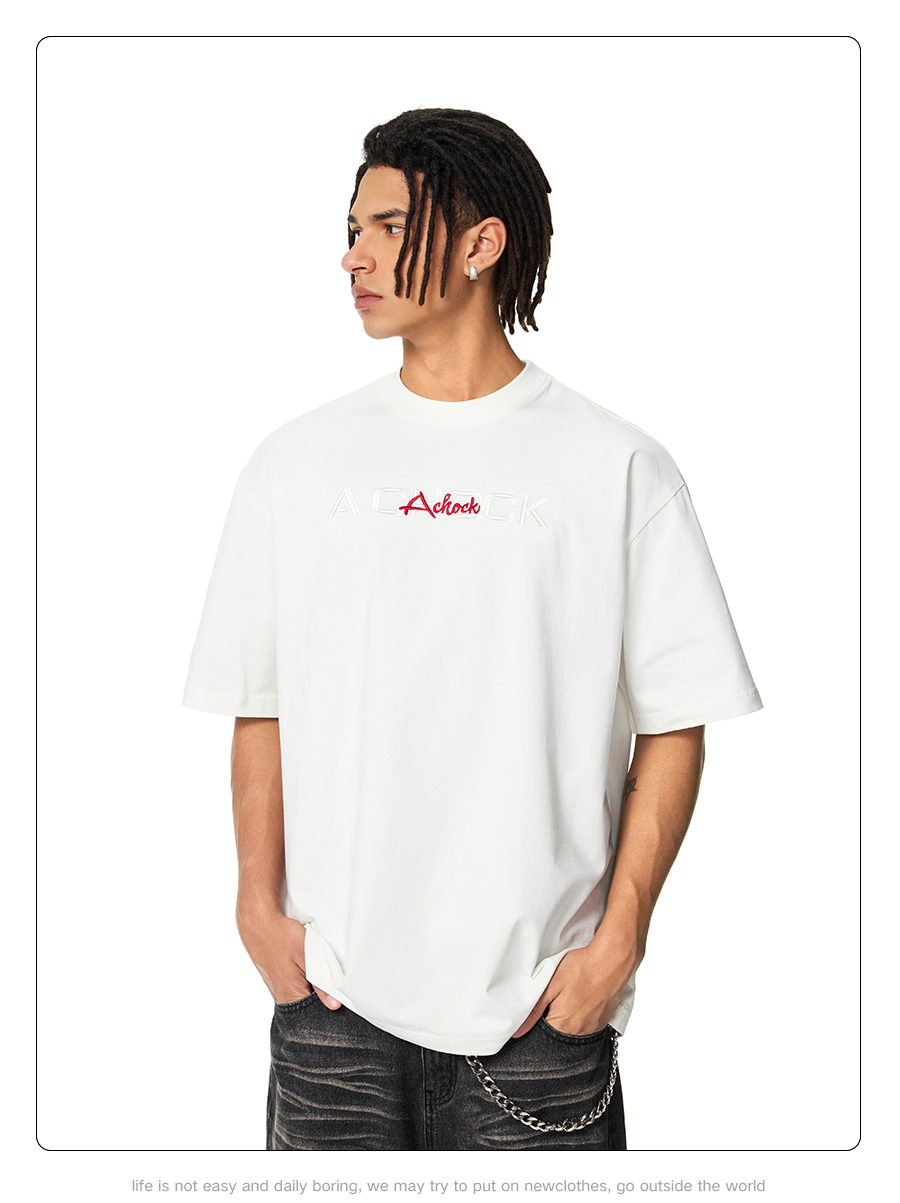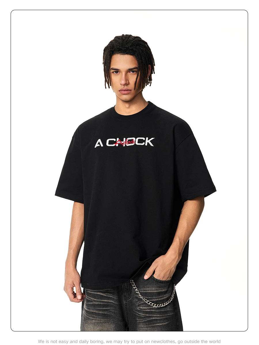 【Achock官方店】美式刺绣短袖T恤男女25ss新款潮牌嘻哈宽松上衣