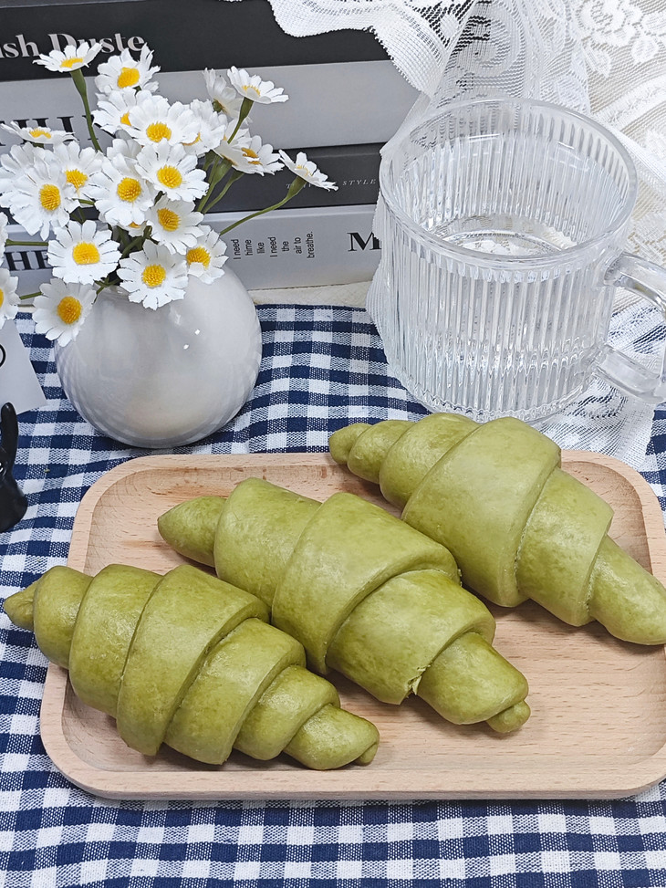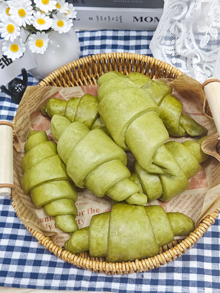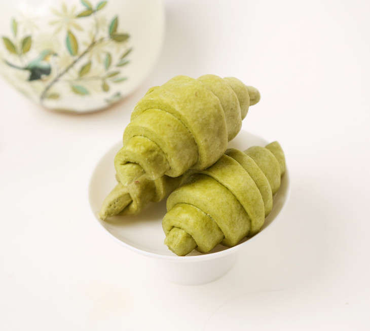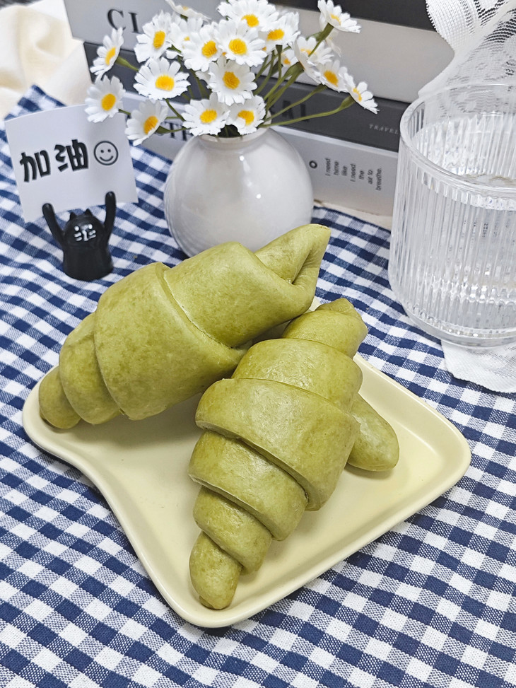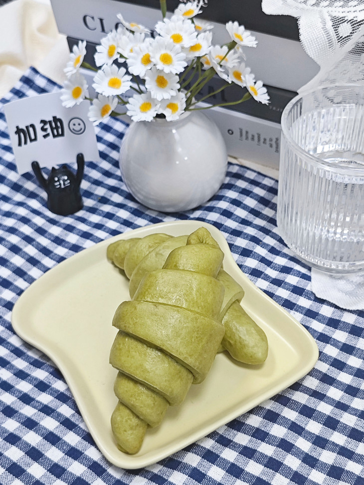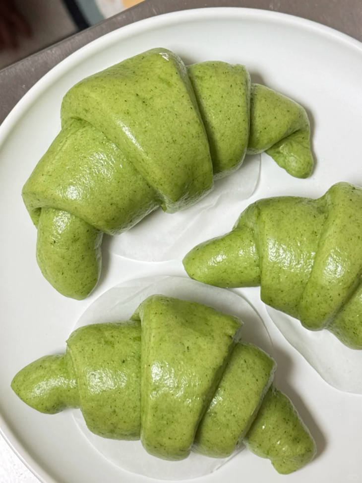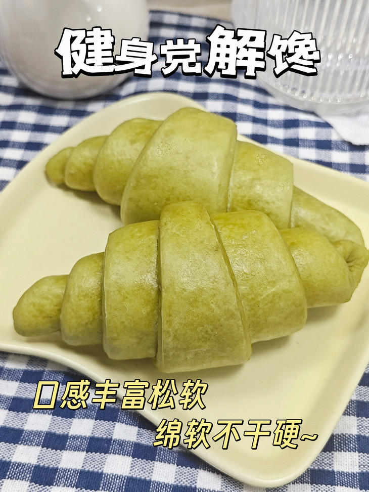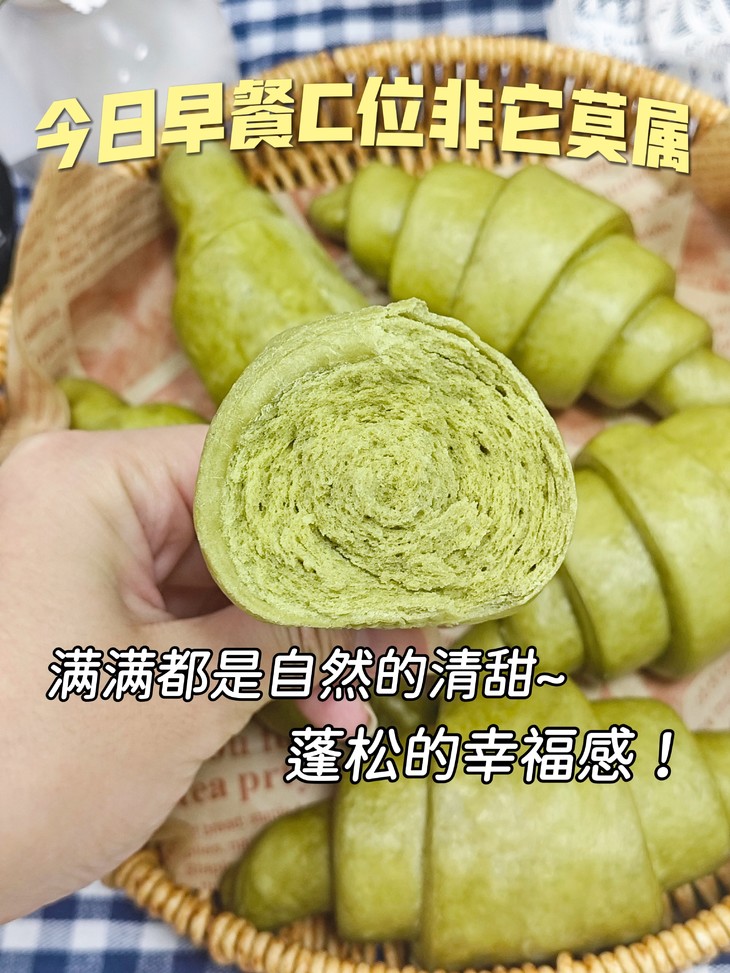 💚绿色系牛角造型,拍照秒杀ins风 配茉莉花茶解腻,搭美式咖啡提神 8层手工折叠工艺,撕开有惊喜拉丝感 🏆高蛋白面粉+羽衣甘蓝抗氧化CP 慢碳水低GI,增肌期也能炫两个