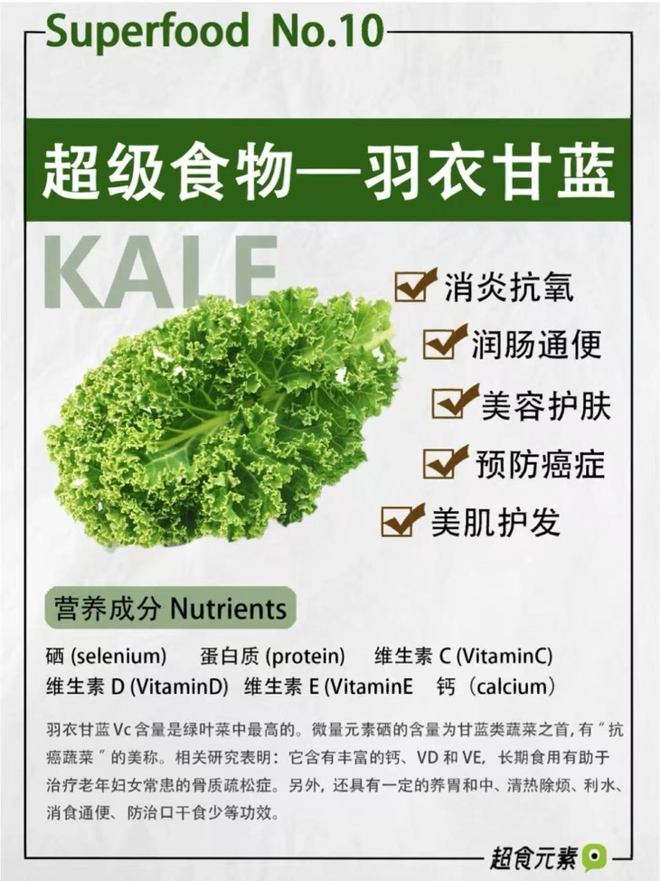 🌿 羽衣甘蓝——超级食物界的“绿巨人” 风靡健身圈、超模餐桌的“蔬菜之王”,低卡高营养的天然营养包! 💪 每100g富含4倍于菠菜的维生素C、2倍于牛奶的钙质,还有超强抗氧化剂叶黄素,堪称“可以吃的防晒霜” 🥬 略带泥土清香的回甘口感,从轻食沙拉到果蔬汁,再到这款颠覆传统的羽衣甘蓝牛角馒头,让“吃草”变成高级享受!