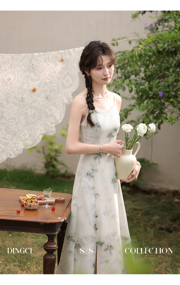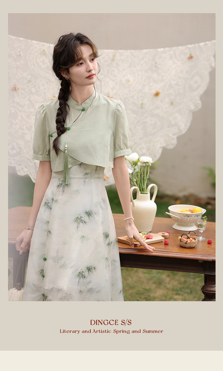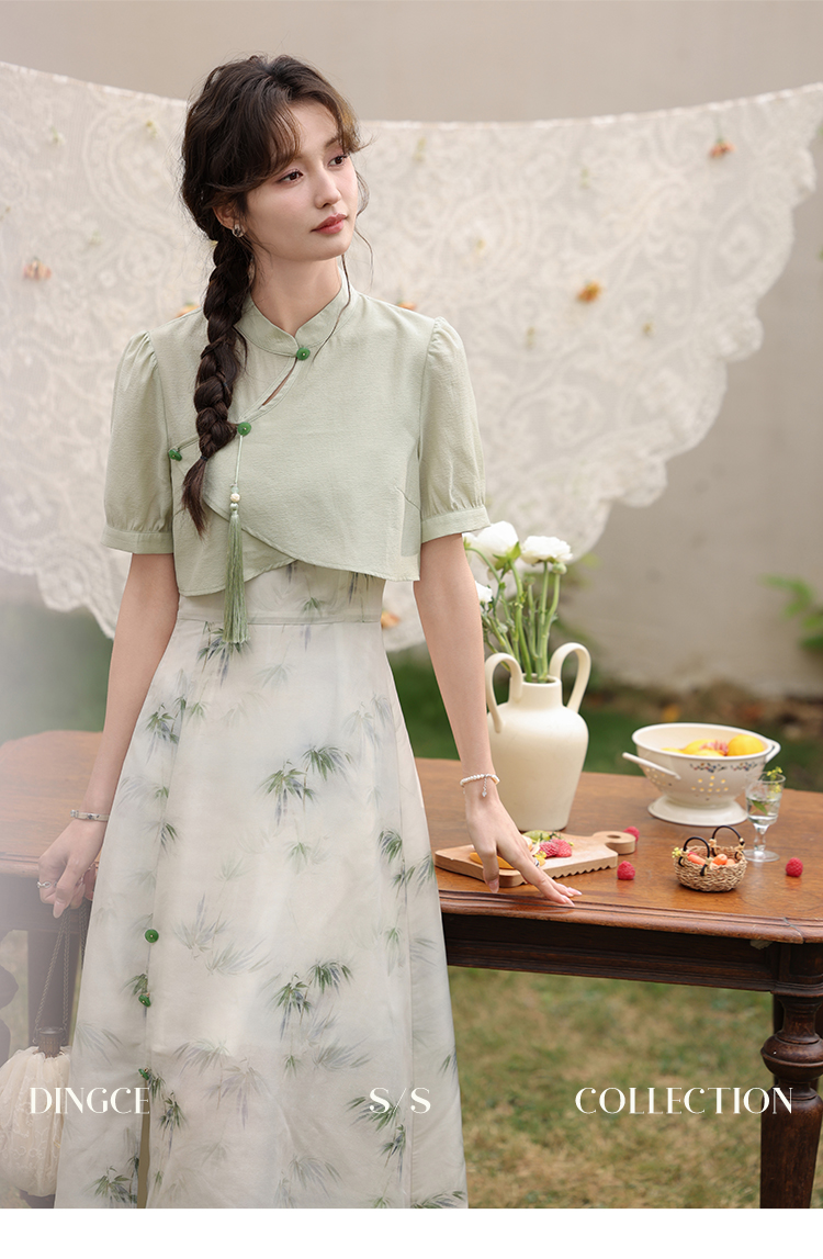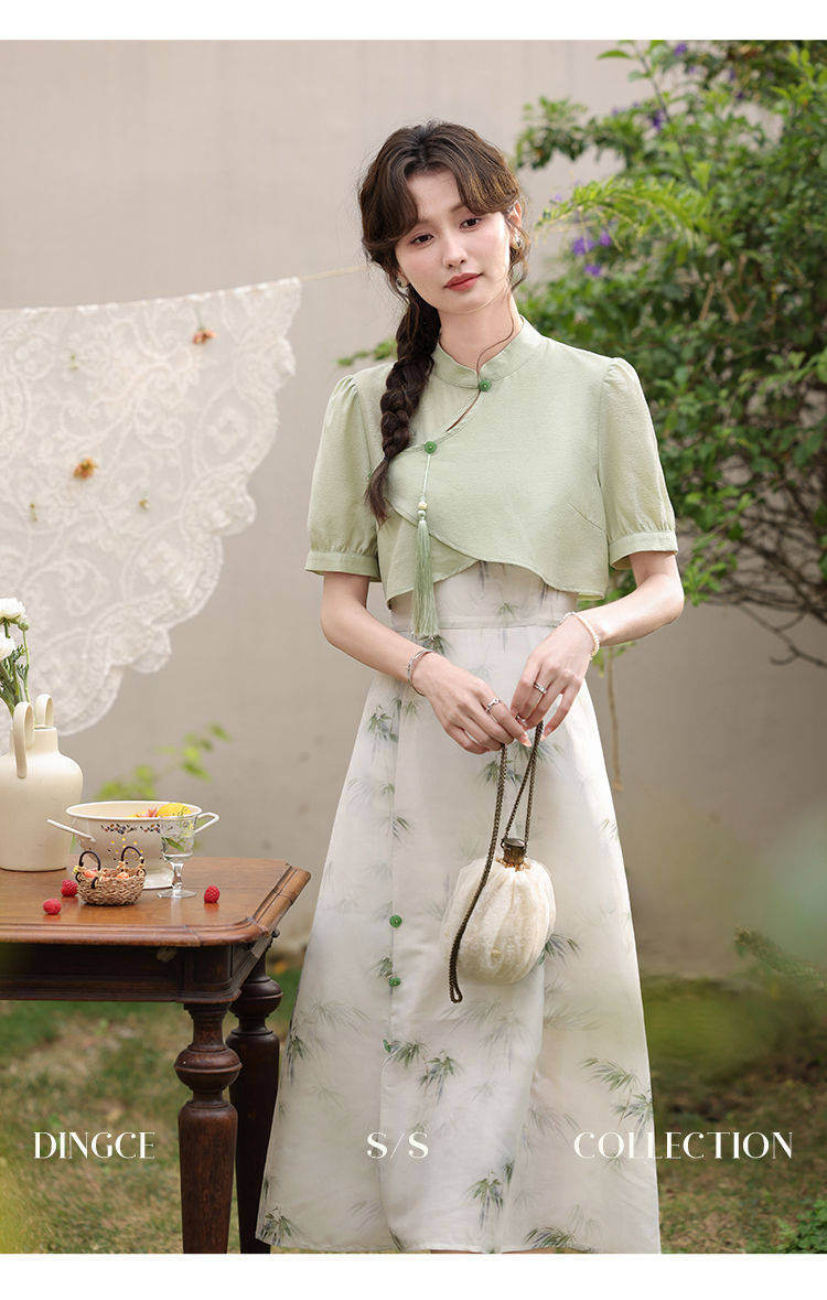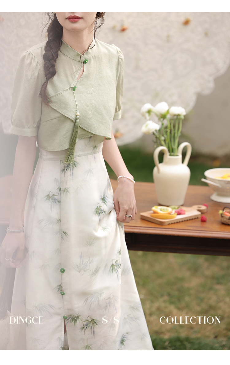 鹿向南 小个子《云雾竹吟》新中式连衣裙2024夏收腰裙子DC00907